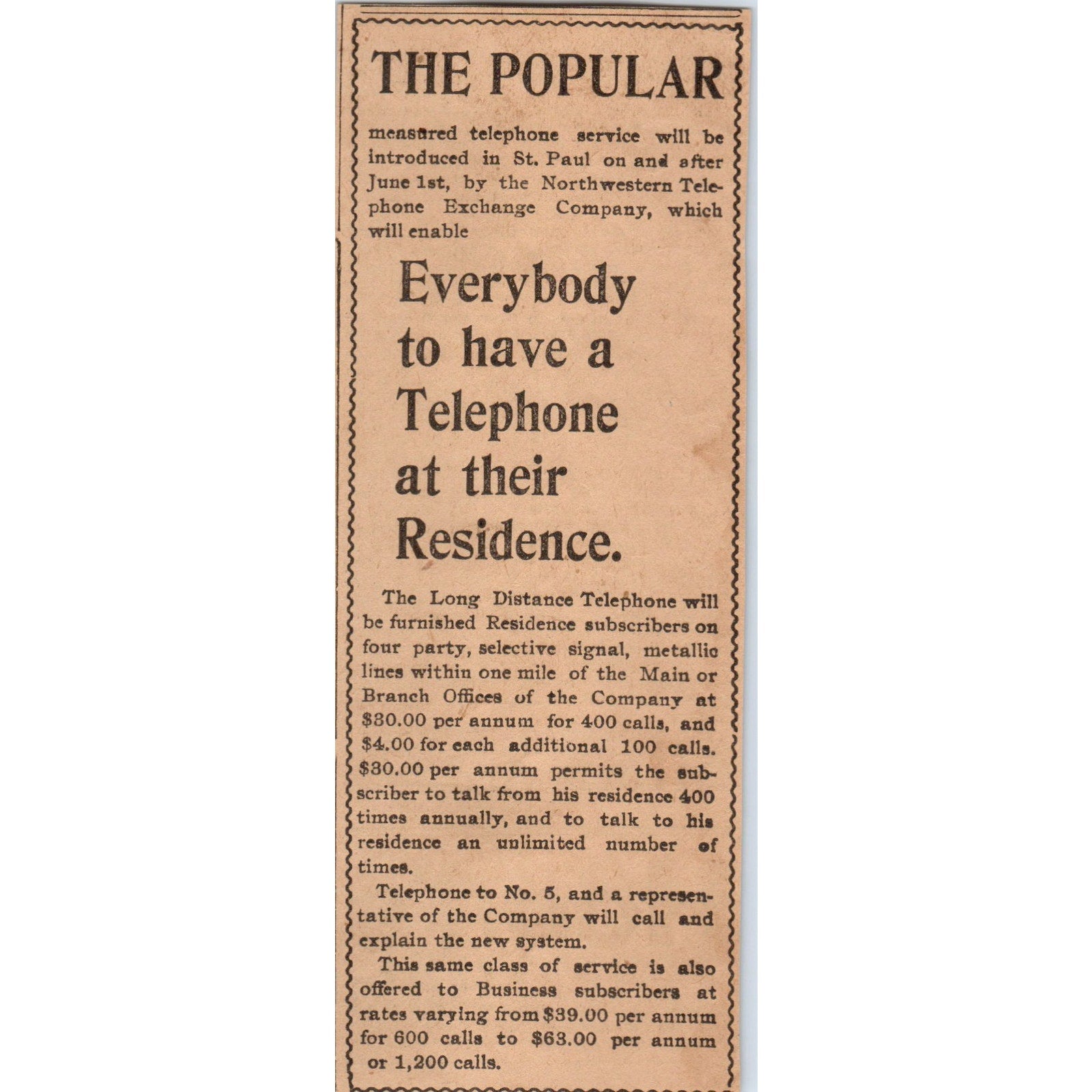 Northwestern Telephone Exchange St. Paul MN 1898 Newspaper Ad AF2-A2