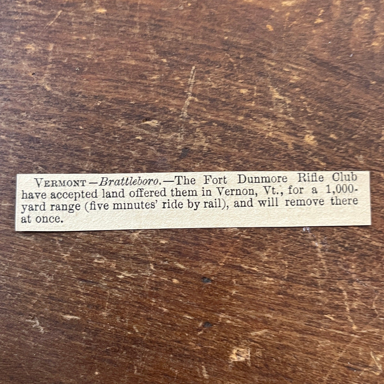 Nov 1878 Brattleboro VT Fort Dunmore Rifle Club Vernon VT Land 1878 Clip AG2-S17