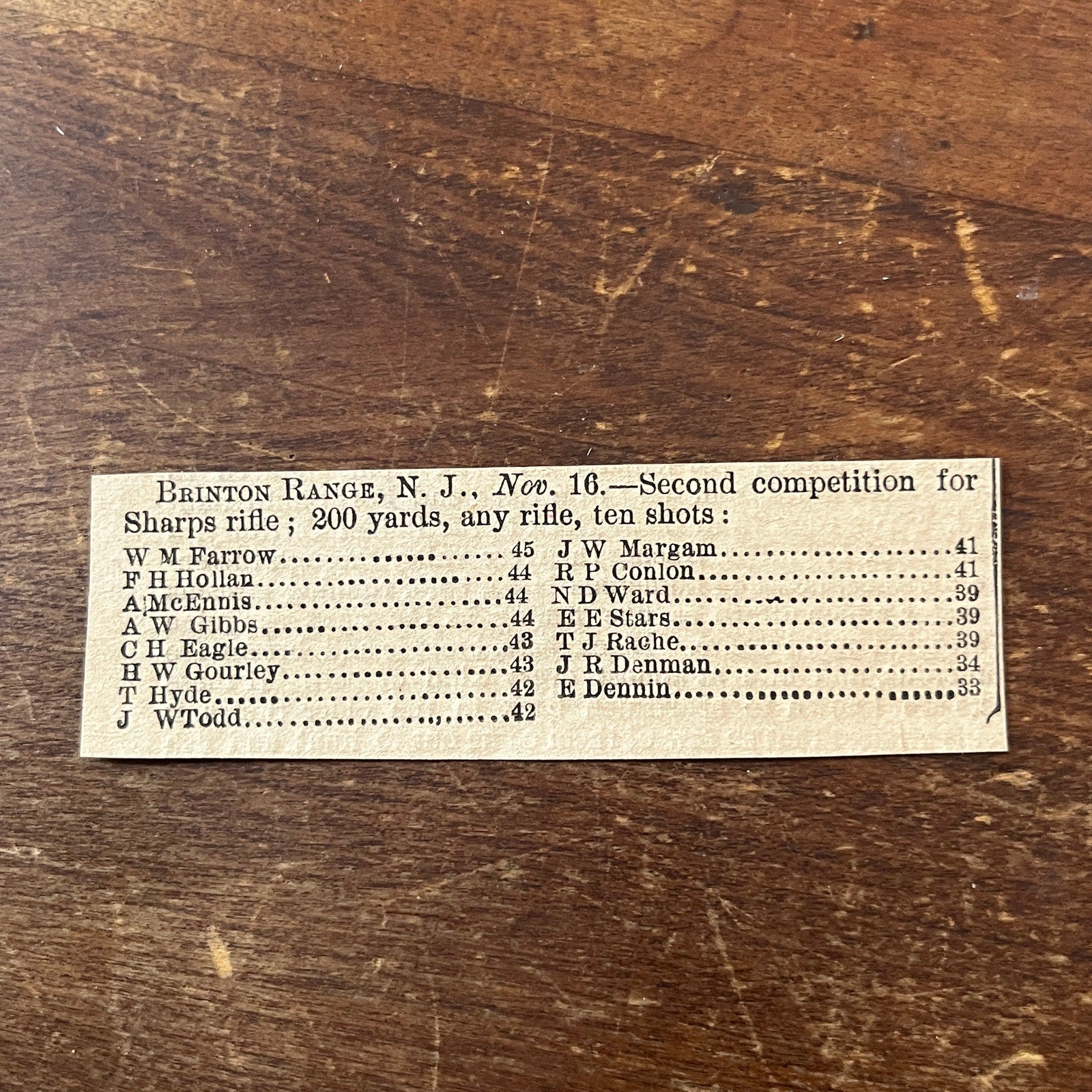 Nov 1878 Brinton Range NJ Rifle Competition Results WM Farrow 1878 Article AG2-S16