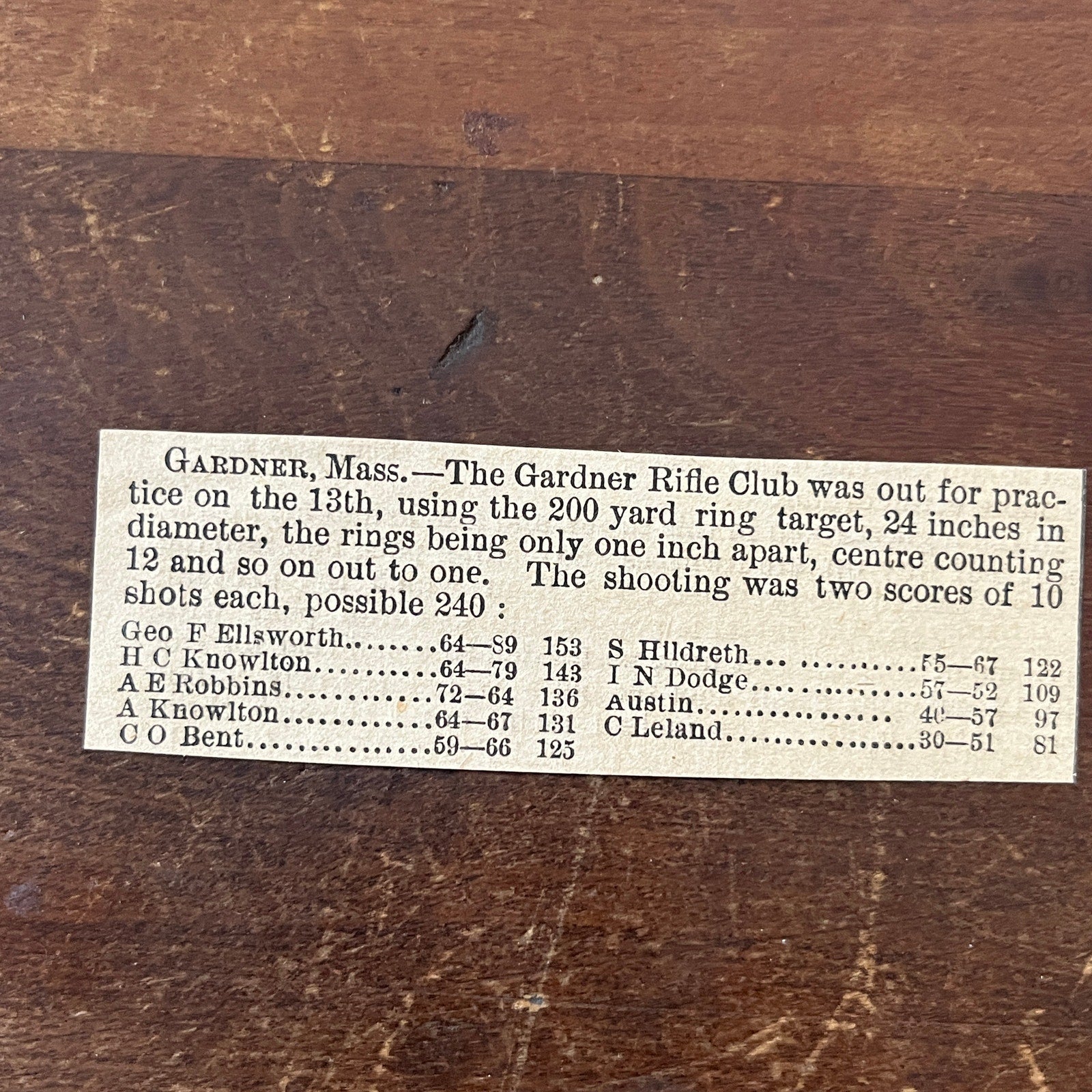 Nov 1878 Garder MA Rifle Club Results Geo F Ellsworth 1878 Article AG2-S16
