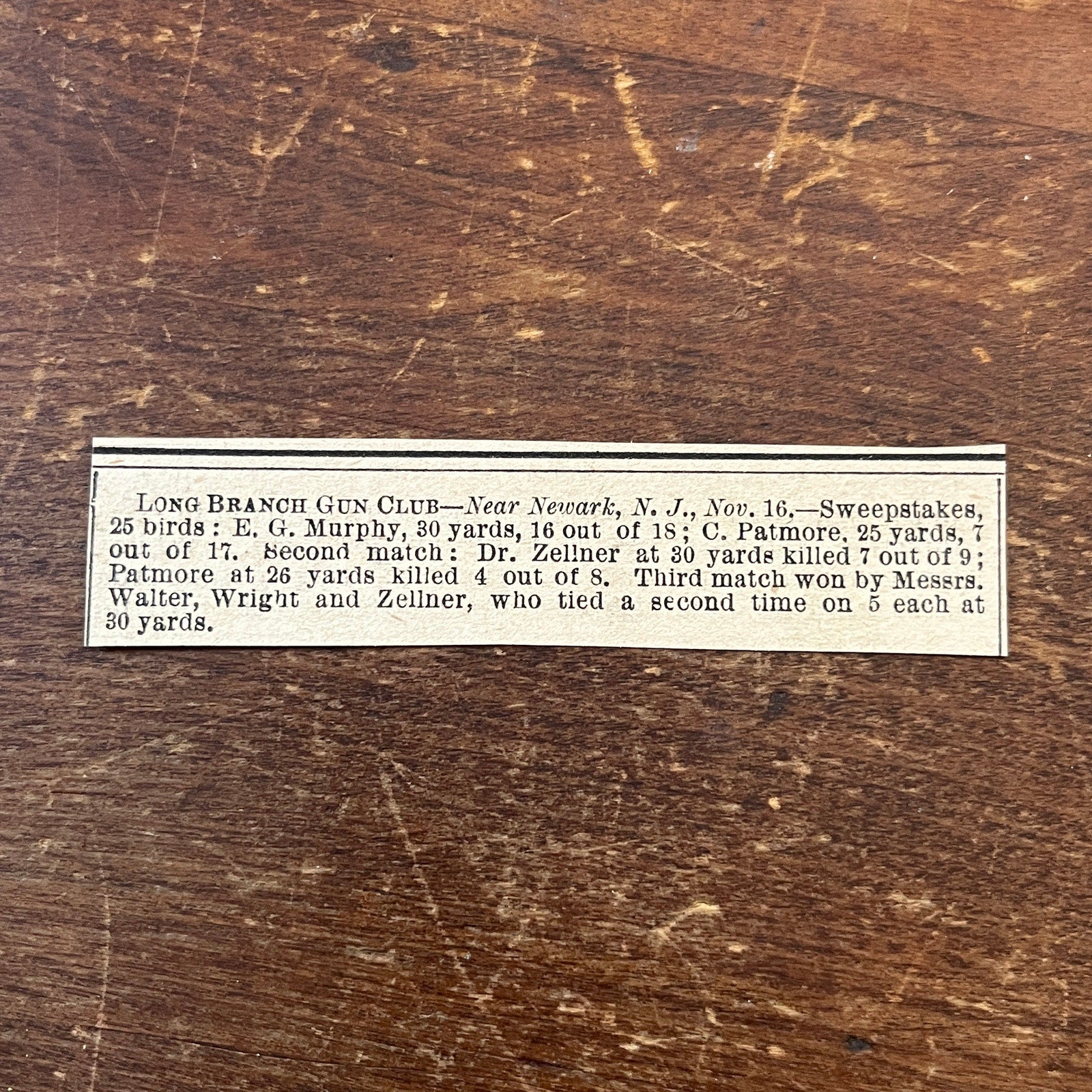 Nov 1878 Long Branch Gun Club Pigeon Match E.G. Murphy 1878 Clip AG2-S18