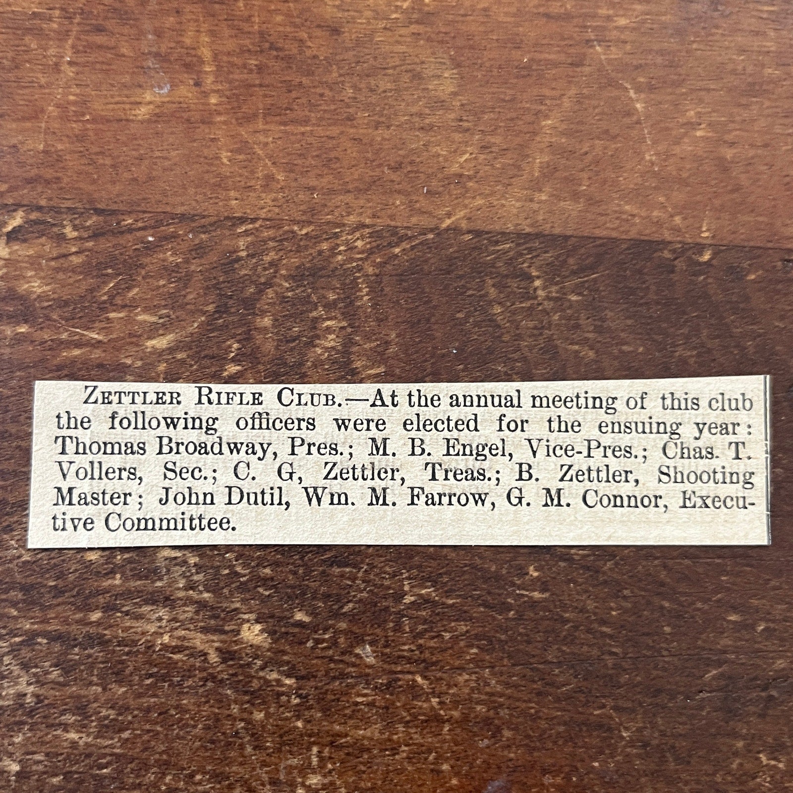 Nov 1878 Zettler Rifle Club Election M.B. Engel Chas T Vollers 1878 Clip AG2-S17