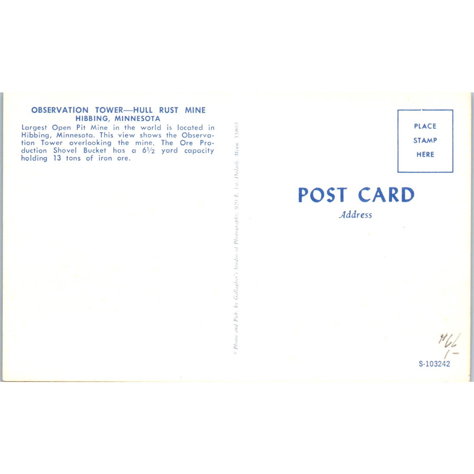 Observation Tower Hull Rust Mine Hibbing Minnesota Original Postcard TK1-20