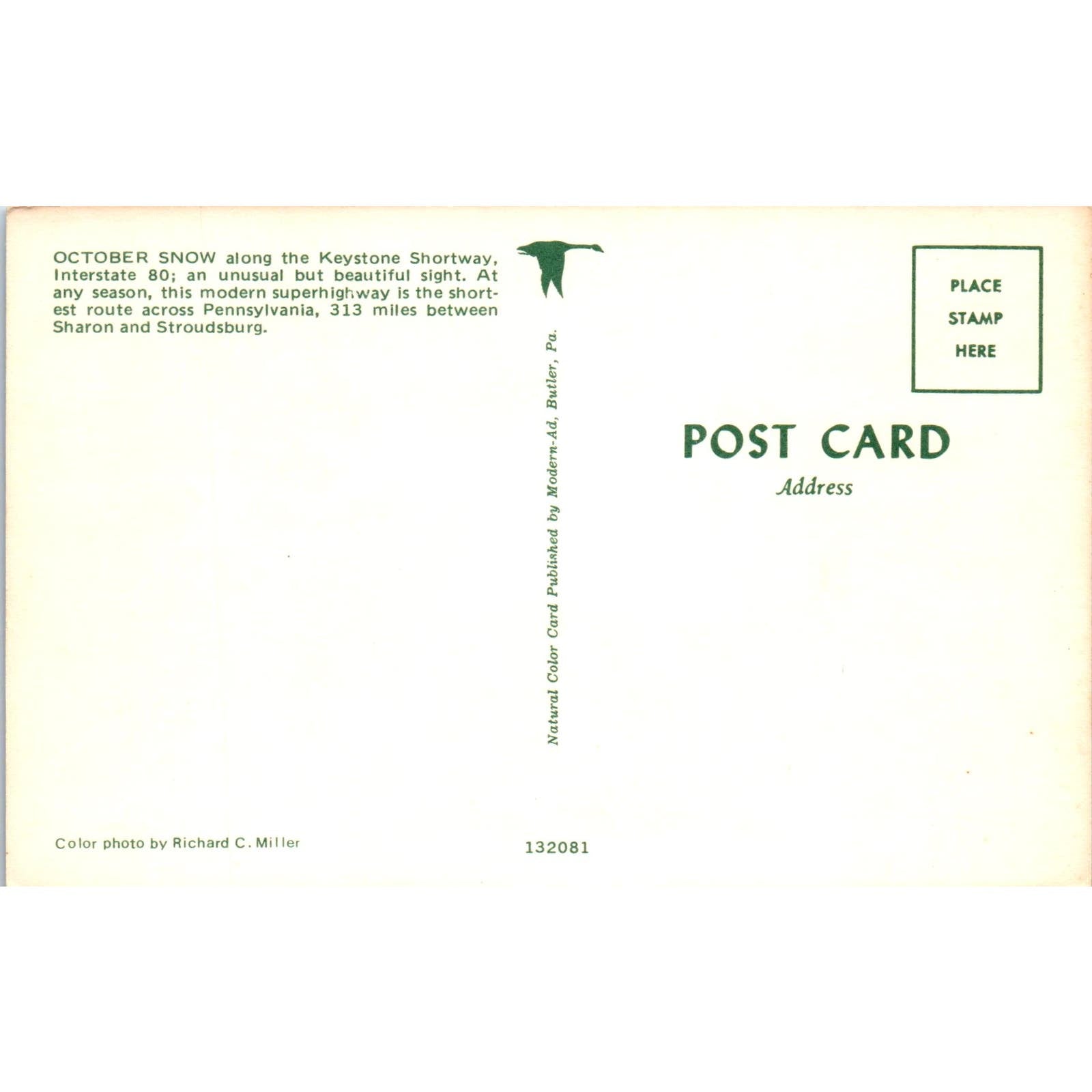 October Snow along Keystone Shortway PA Dutch Country Vintage Postcard PD4
