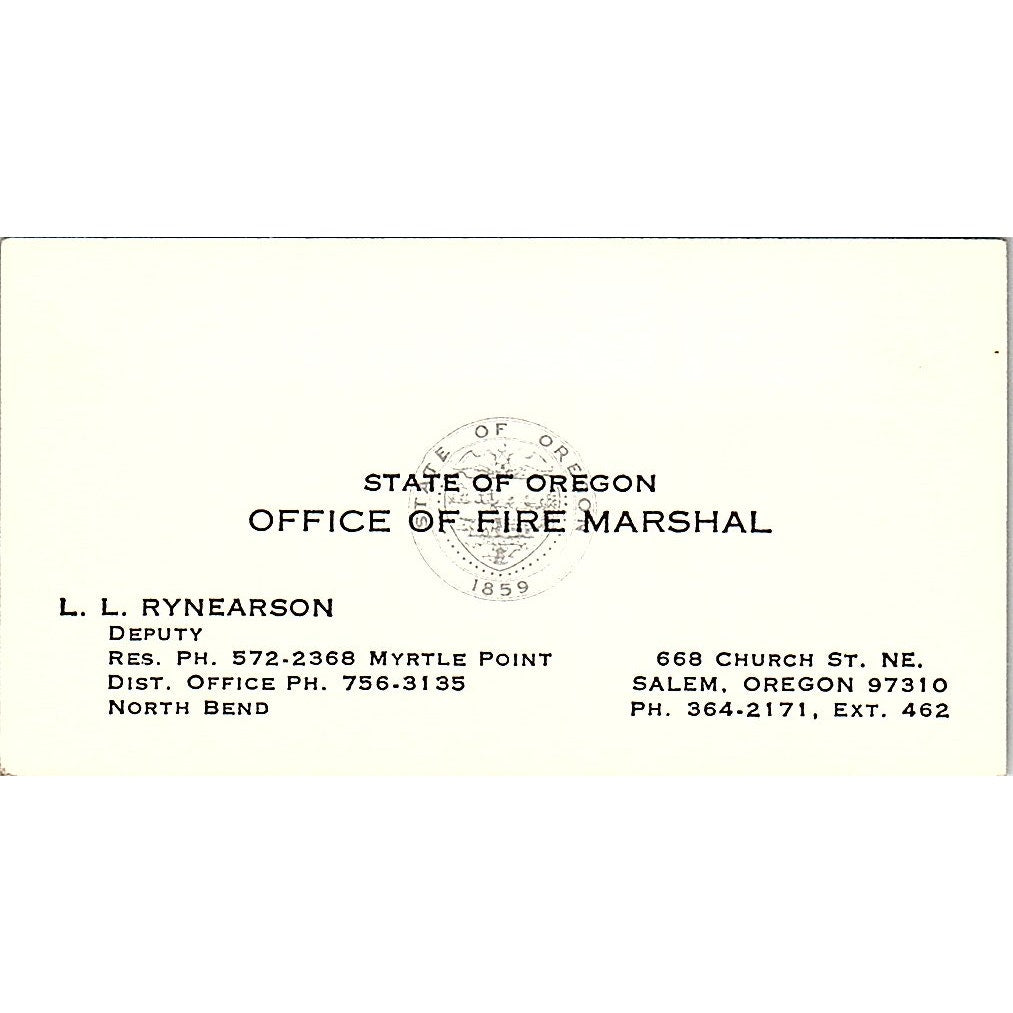 Office of Fire Marshal L. L. Rynearson Salem Oregon Business Card SF3-B3