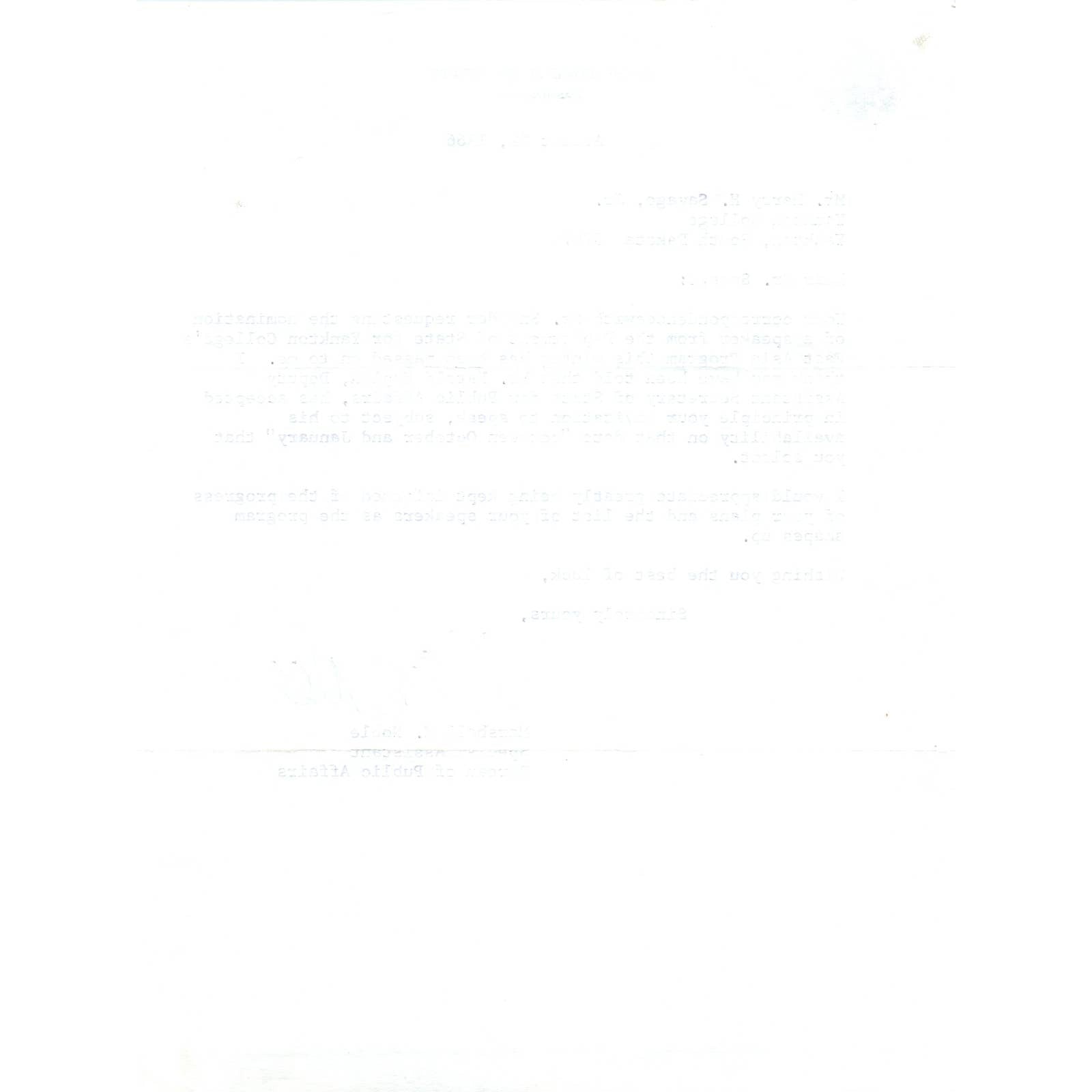 This came from a large grouping of documents from Yankton College in South Dakota from the 1960s. See pics for condition.