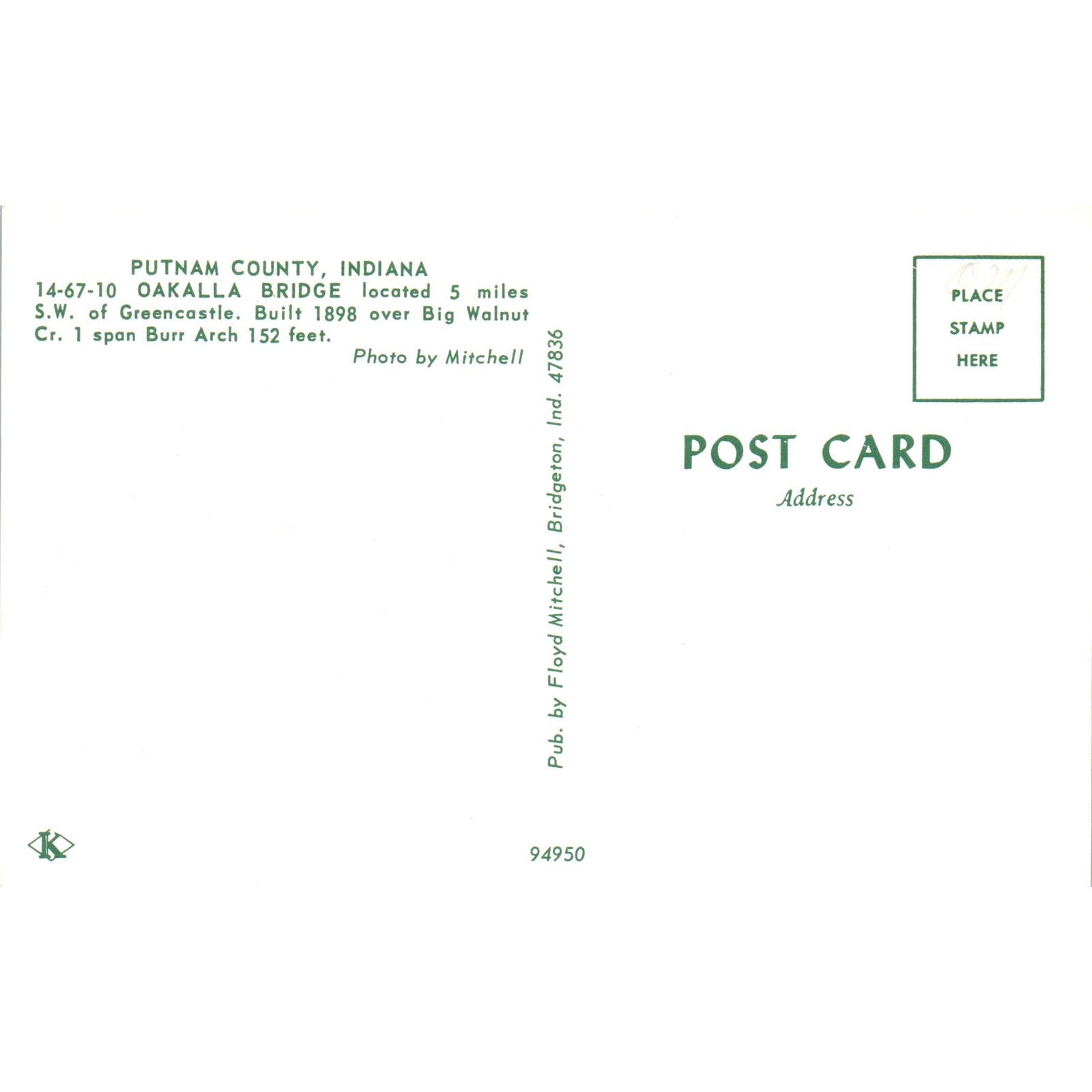 Okalla Bridge 14-67-10 Putnam County IN Vintage Covered Bridge Postcard PD1