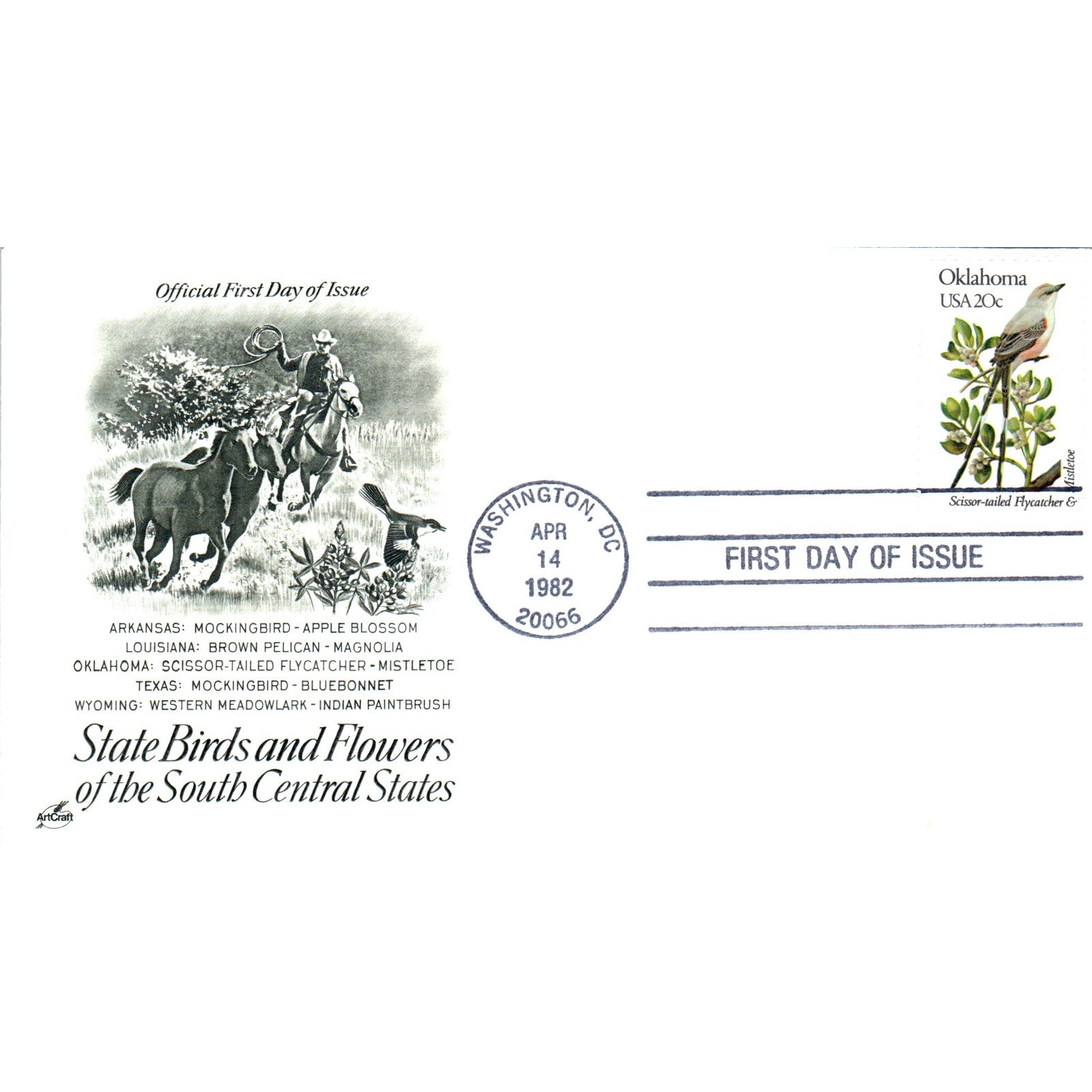 Oklahoma 1982 State Birds & Flowers South Central States First Day Issue TJ5-PC1