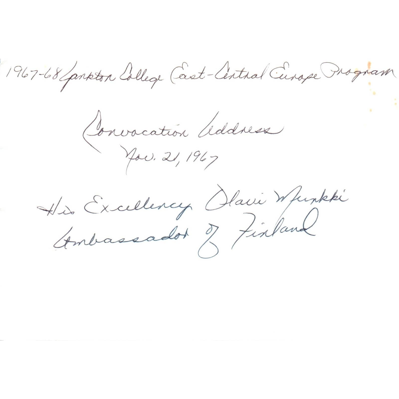 Olavi Munkki Finland Ambassador Yankton College Convocation 1967 Photo TK1-P5