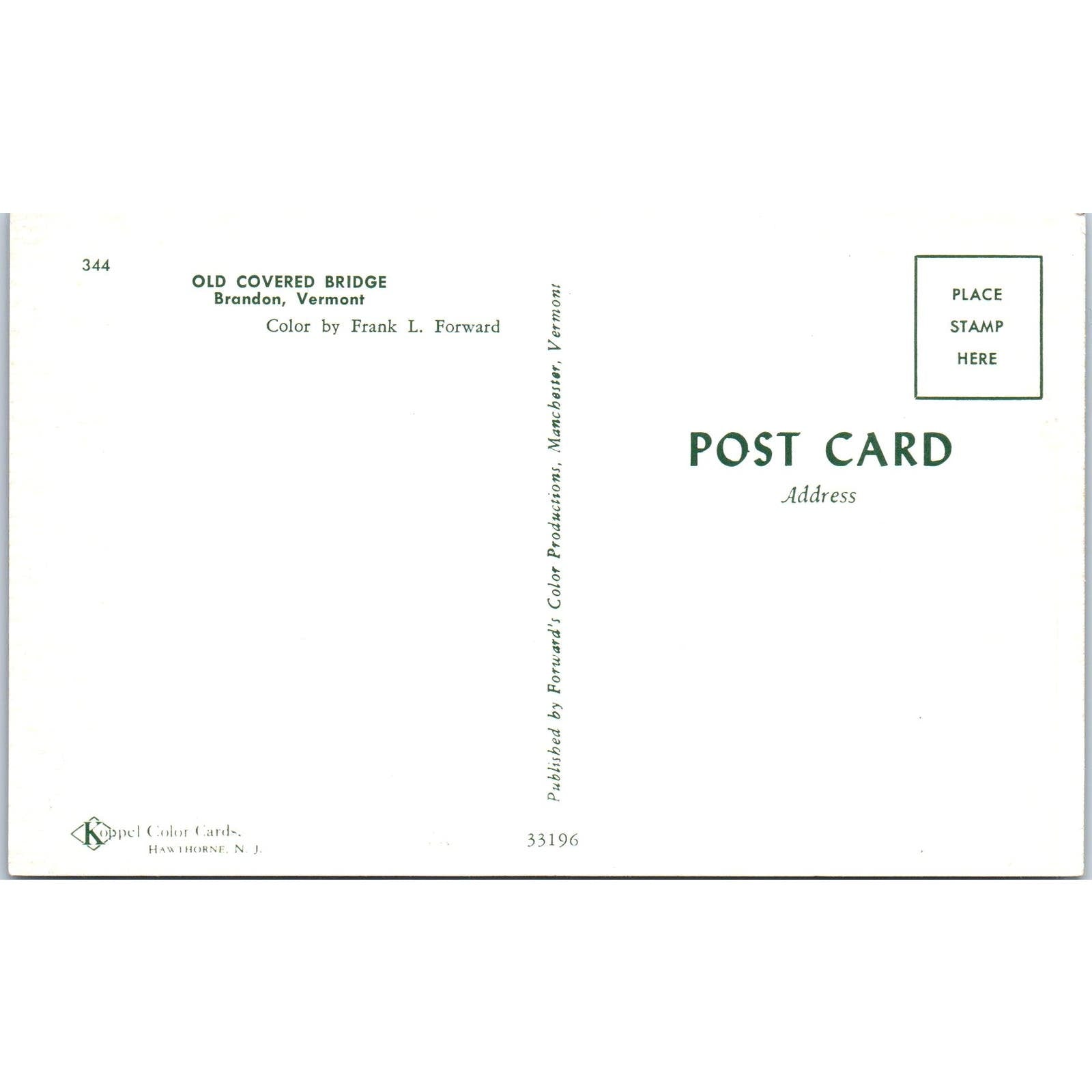 Old Covered Bridge Brandon Vermont Covered Bridge Postcard PC7