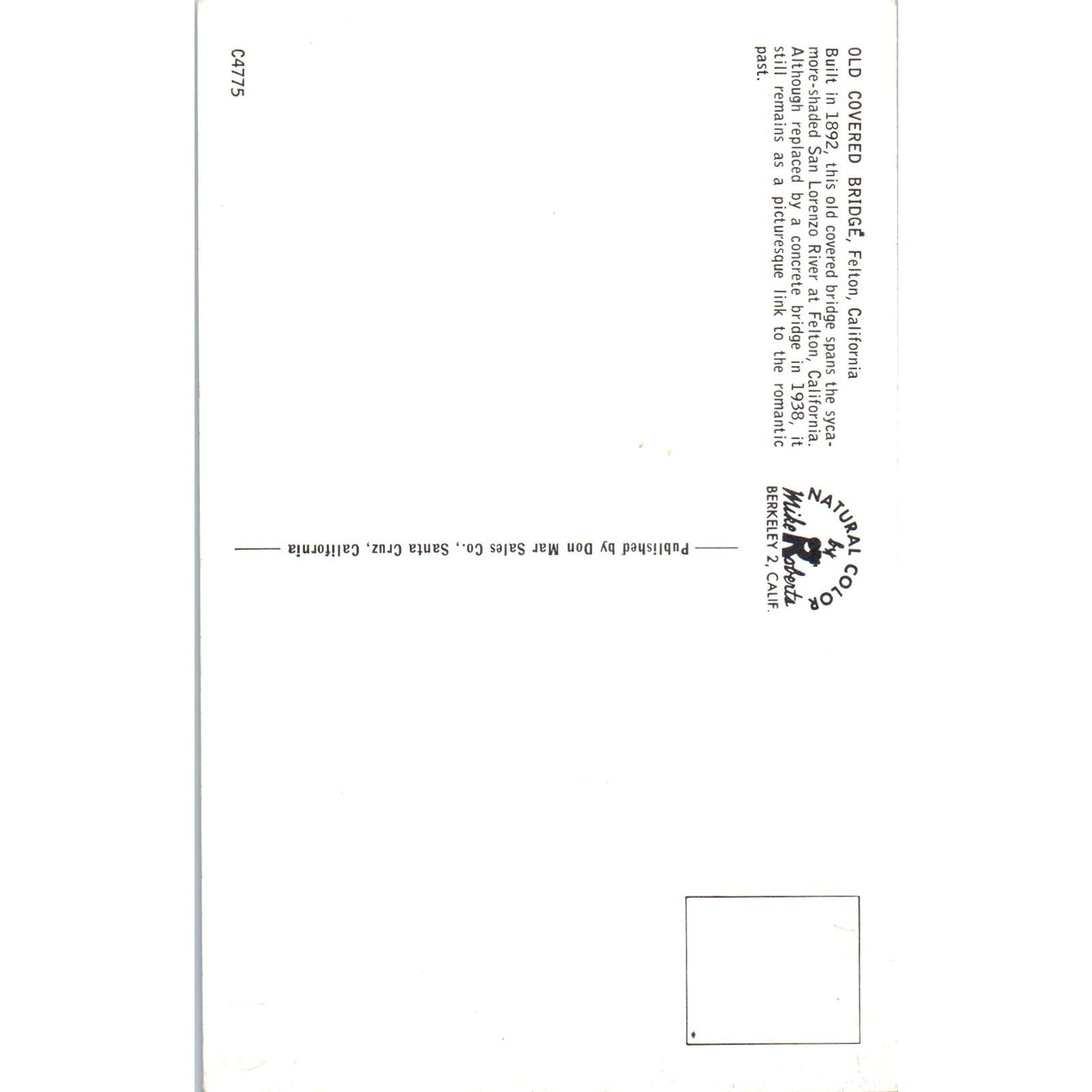 Old Covered Bridge Felton CA San Lorenzo River Covered Bridge Postcard PB11