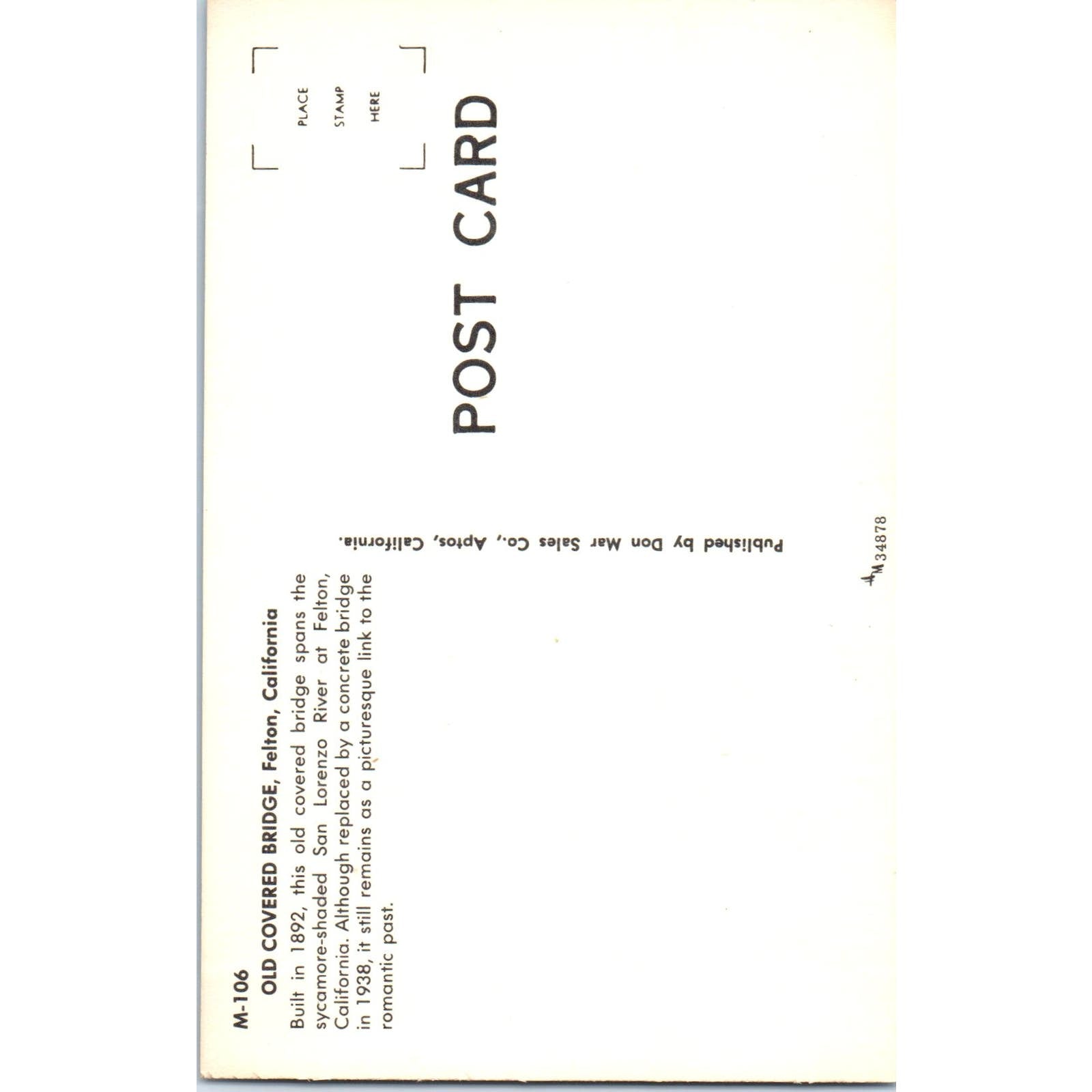 Old Covered Bridge Felton CA San Lorenzo River Vintage Bridge Postcard PD3