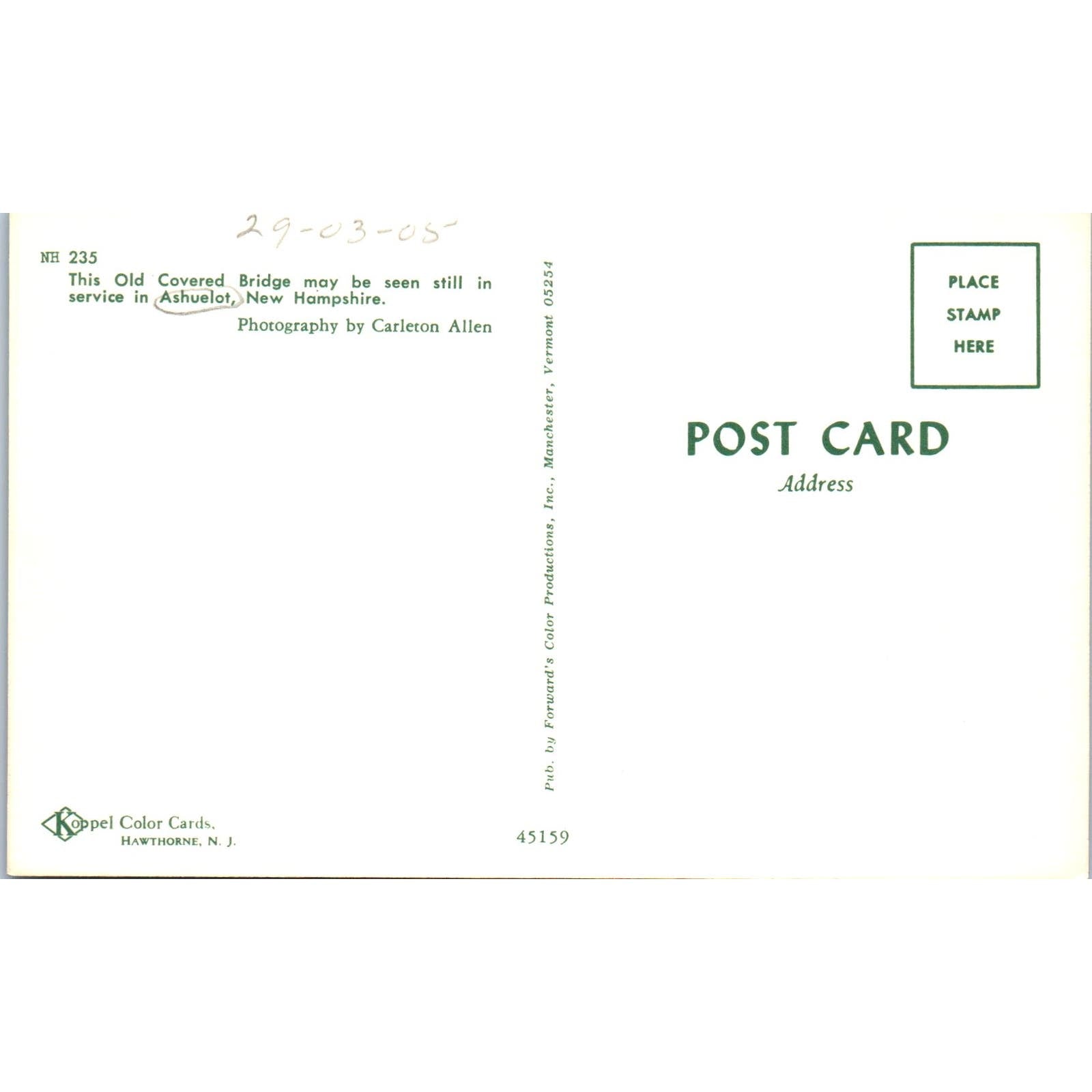 Old Covered Bridge in Ashuelot NH Covered Bridge Postcard PC4