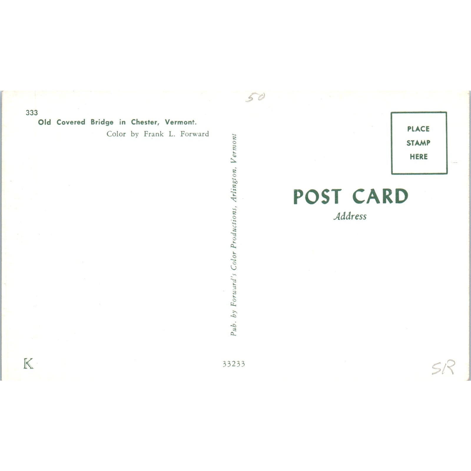 Old Covered Bridge in Chester Vermont Vintage Covered Bridge Postcard PC17
