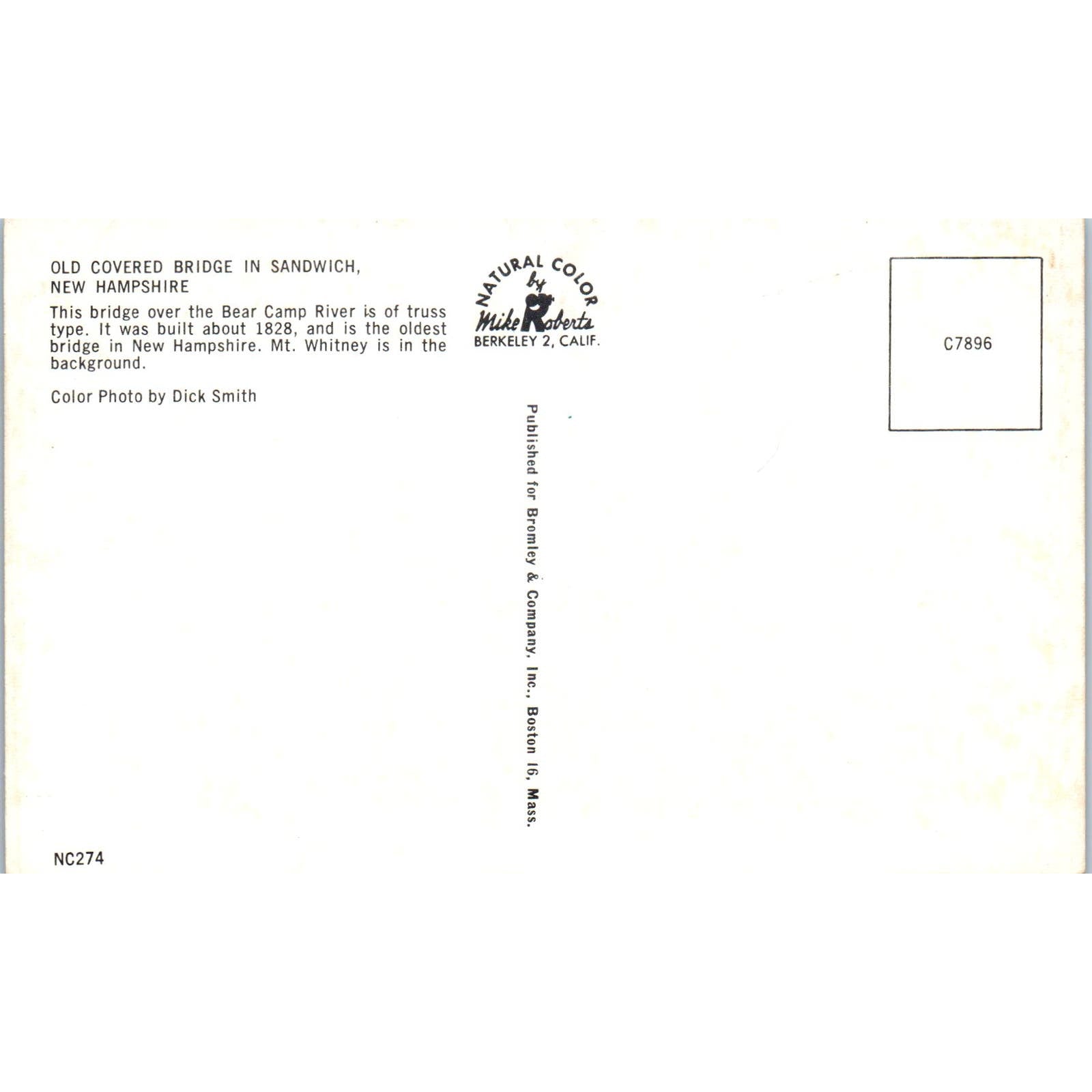 Old Covered Bridge in Sandwich New Hampshire Covered Bridge Postcard PC3