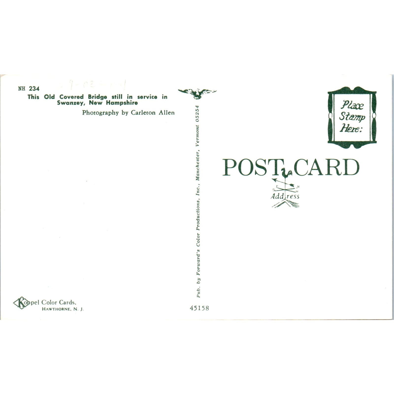 Old Covered Bridge in Swanzey NH Covered Bridge Postcard PC4
