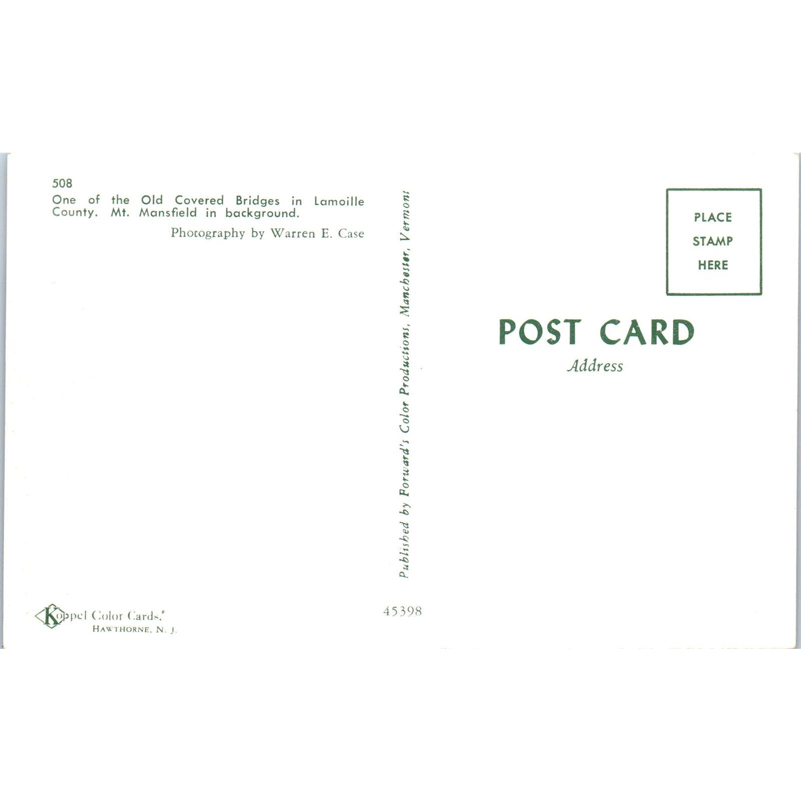 Old Covered Bridge Lamoille County Mt. Mansfield Vintage Covered Bridge Postcard PD1