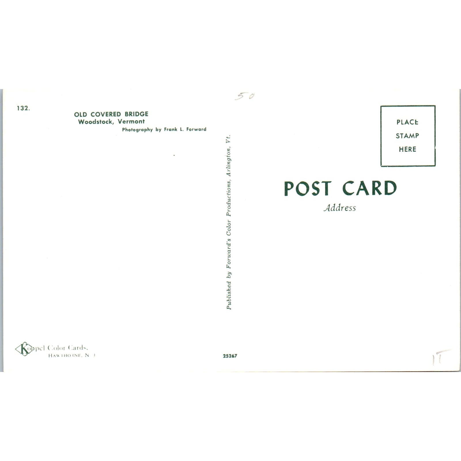 Old Covered Bridge Woodstock Vermont Covered Bridge Postcard PC1