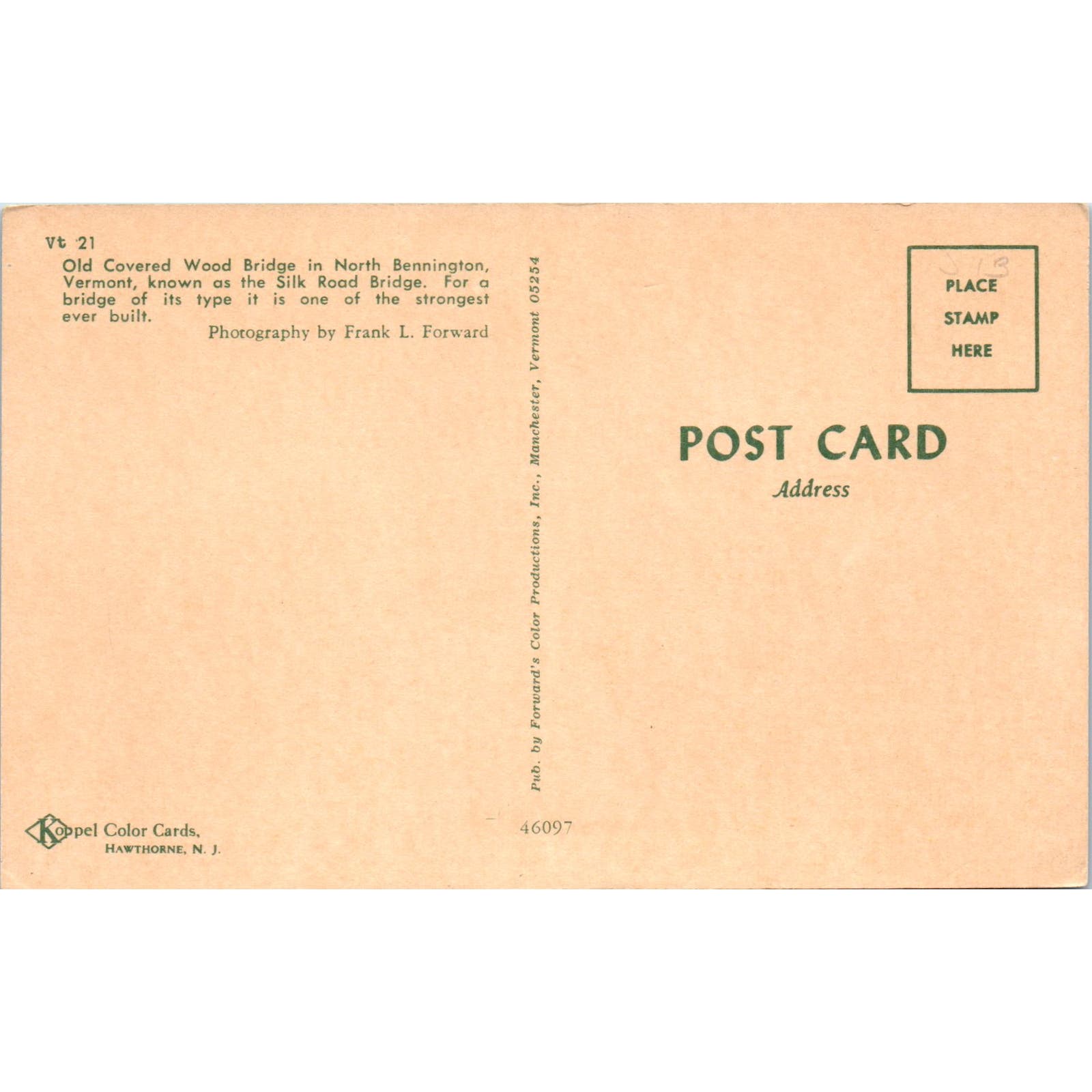 Old Covered Wood Bridge In North Bennington Vermont Vintage Postcard PD2