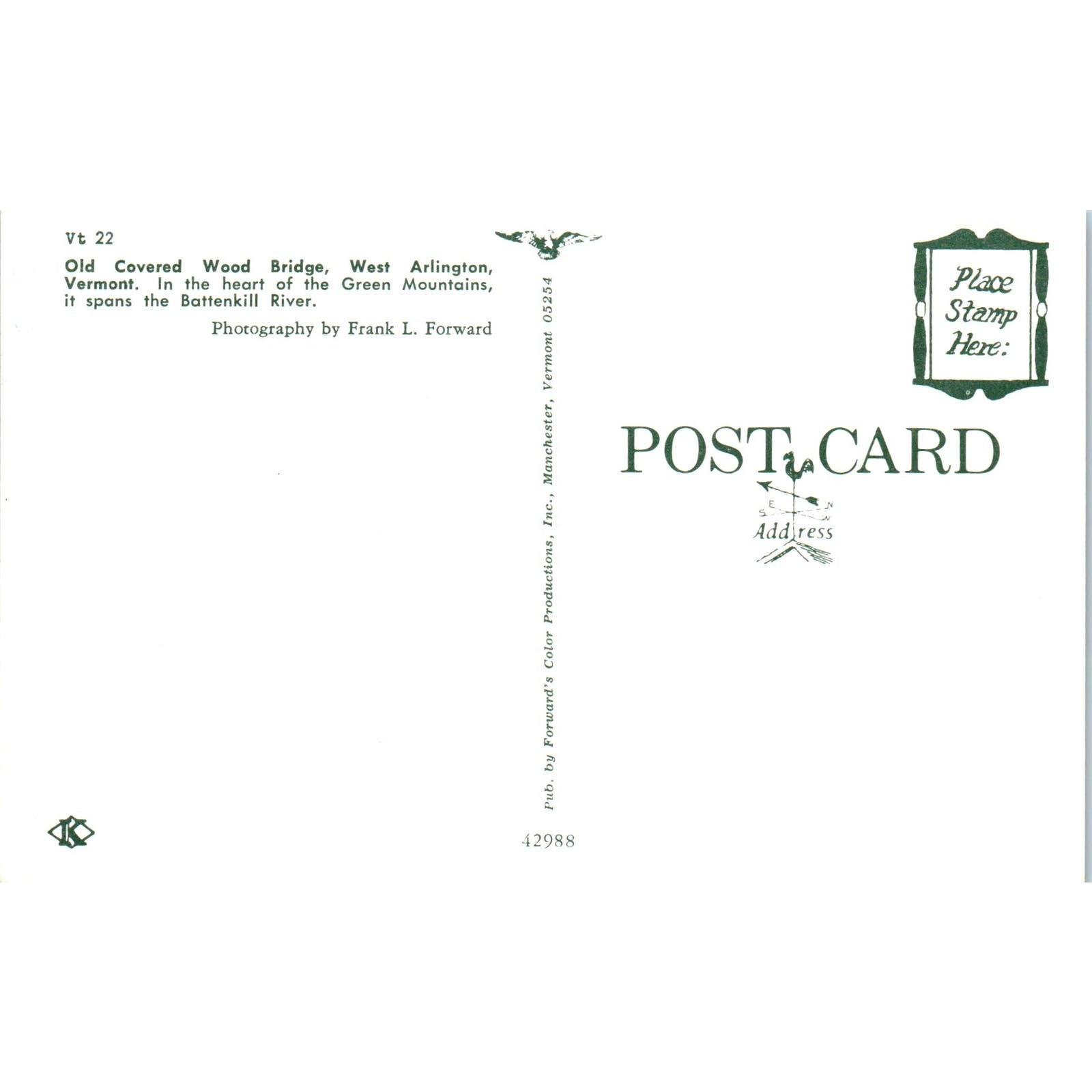 Old Covered Wood Bridge West Arlington VT Vintage Covered Bridge Postcard PD1