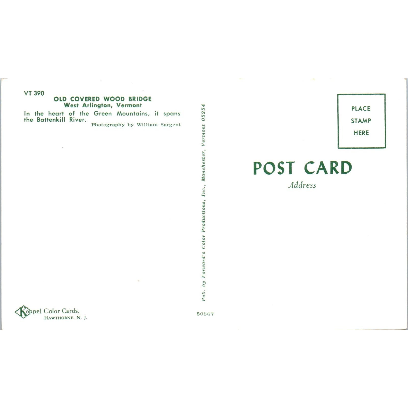 Old Covered Wood Bridge West Arlington VT Vintage Covered Bridge Postcard PD6