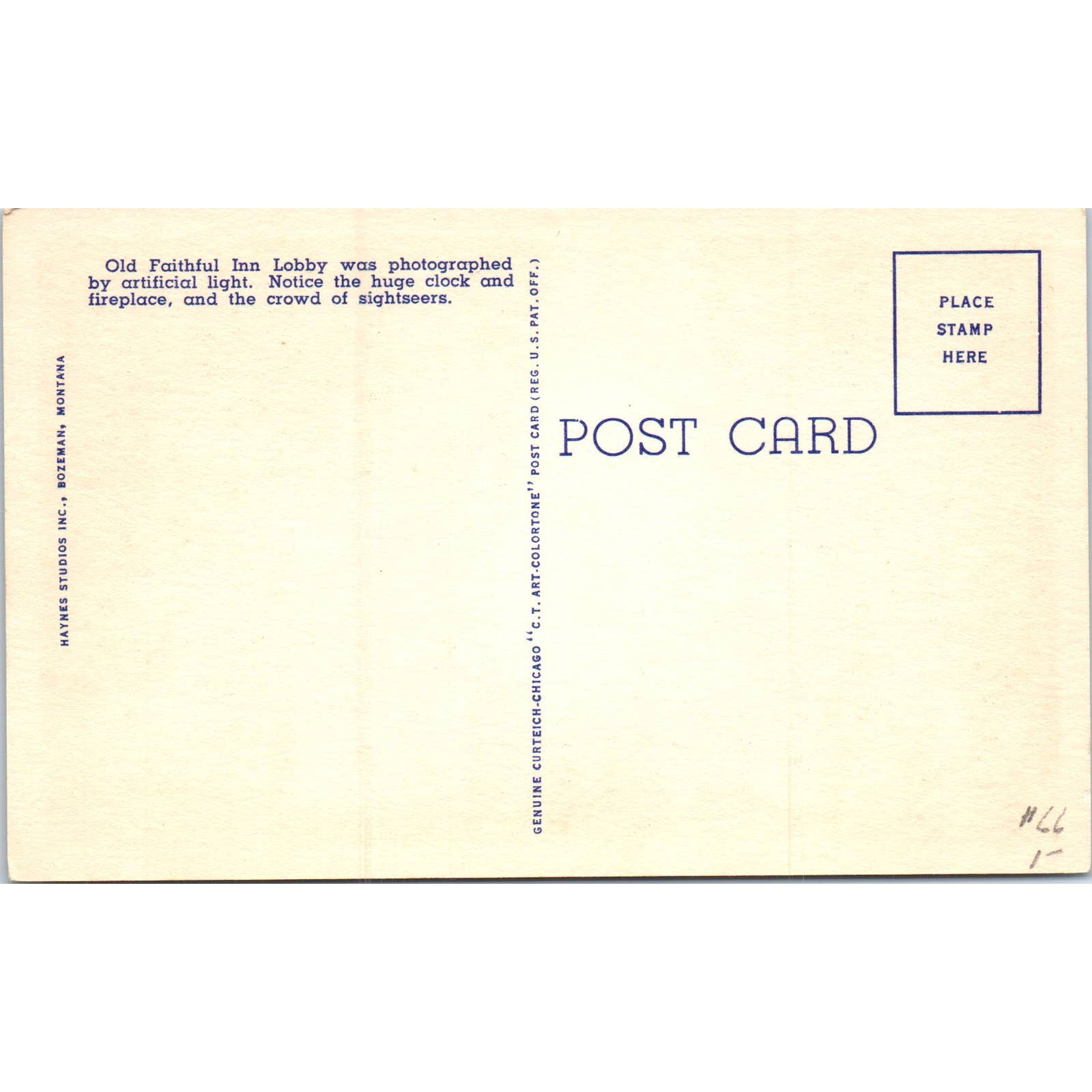Old Faithful Inn Lobby Yellowstone Park Original Postcard TK1-P14