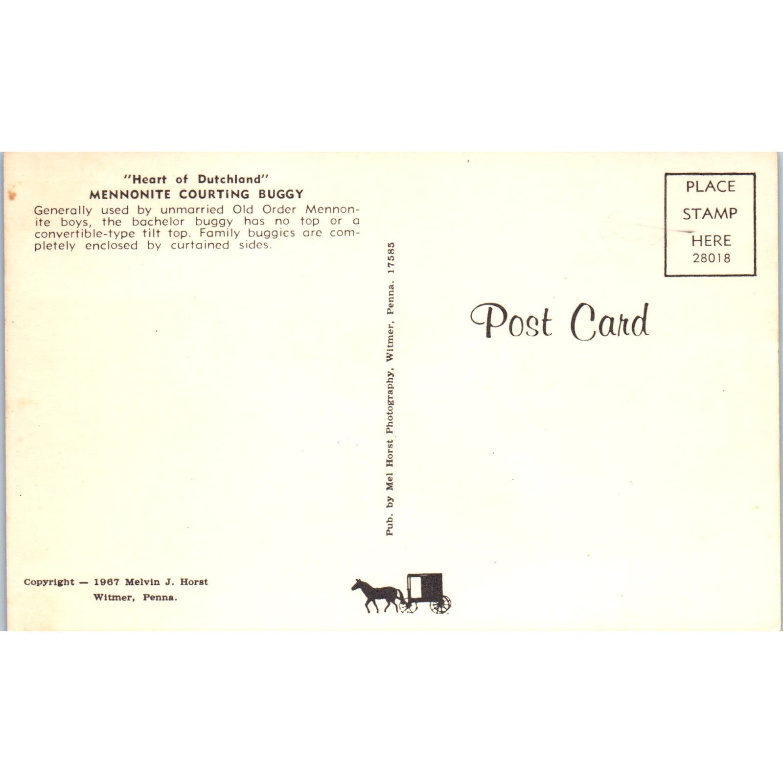 Old Order of Mennonite Courting Buggy Pennsylvania Dutch Country Postcard PD8