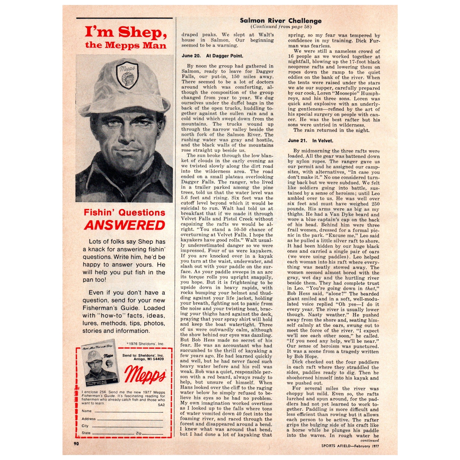 Has a ripple. Measures approx 8x11. Original piece from Feb 1977 Sports Afield Magazine. There be some light staining, tears, and/or other signs of wear and tear. See pics for condition.