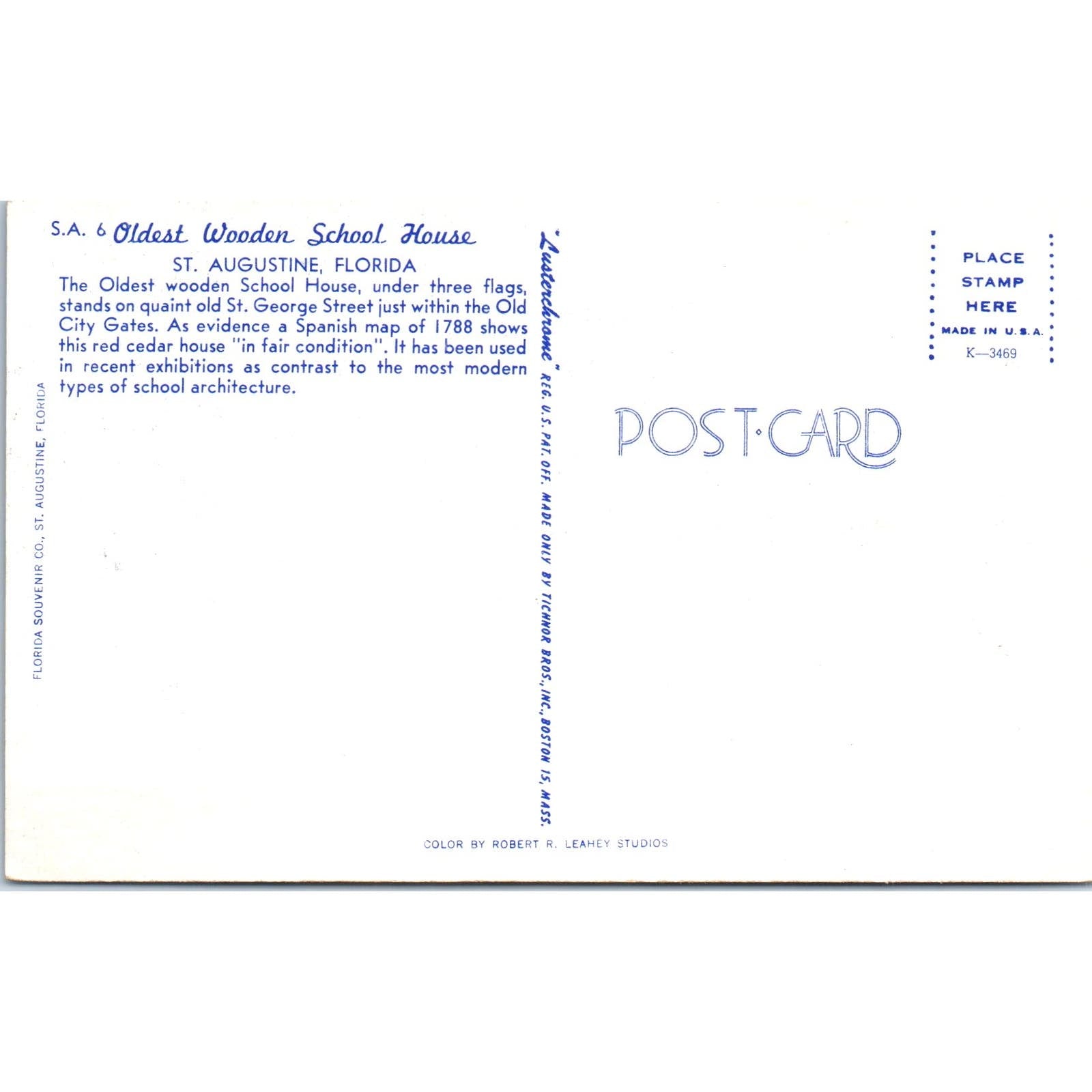 Oldest Wooden Schoolhouse in St. Augustine FL Vintage Postcard PD1