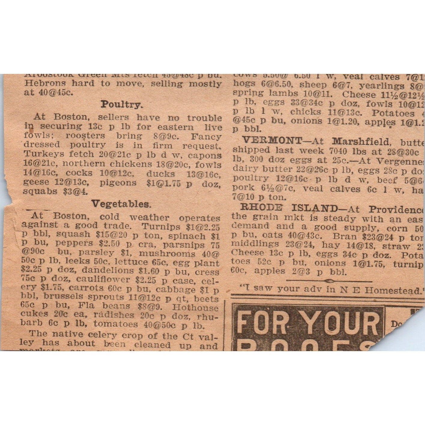 This is a SMALL ad, measuring approx 2x4". Original piece pulled from Feb 18, 1905 New England Homestead Magazine. There may be some light staining, tears, and/or other signs of wear and tear. See pics for condition.