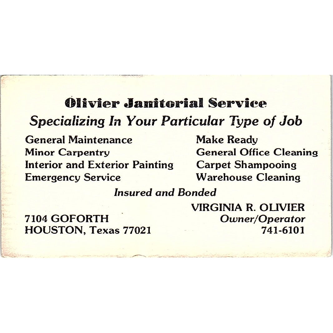Olivier Janitorial Service ,Virginia R. Olivier, Houston TX, Business Card SF3-B9