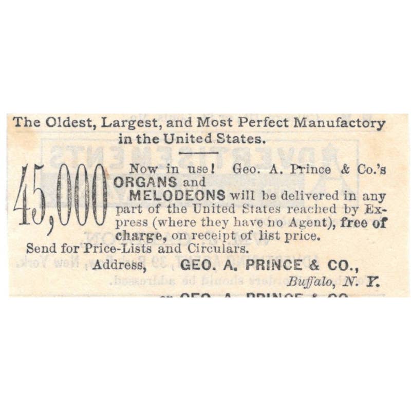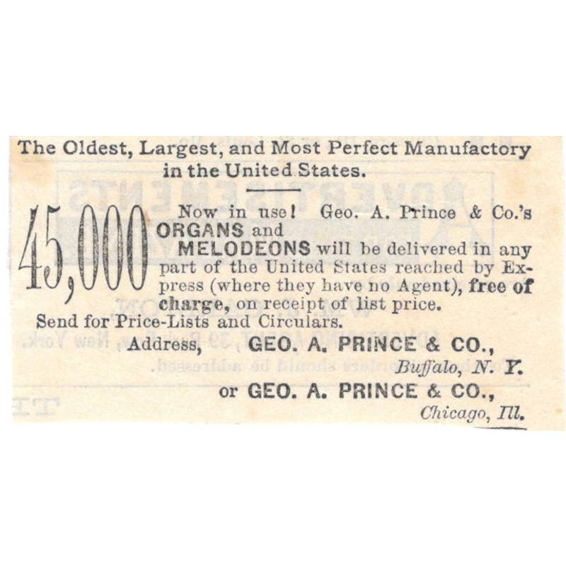 Organs & Melodions Geo. A. Prince Co Buffalo NY - Ad 1878 Original TJ7-L2-4