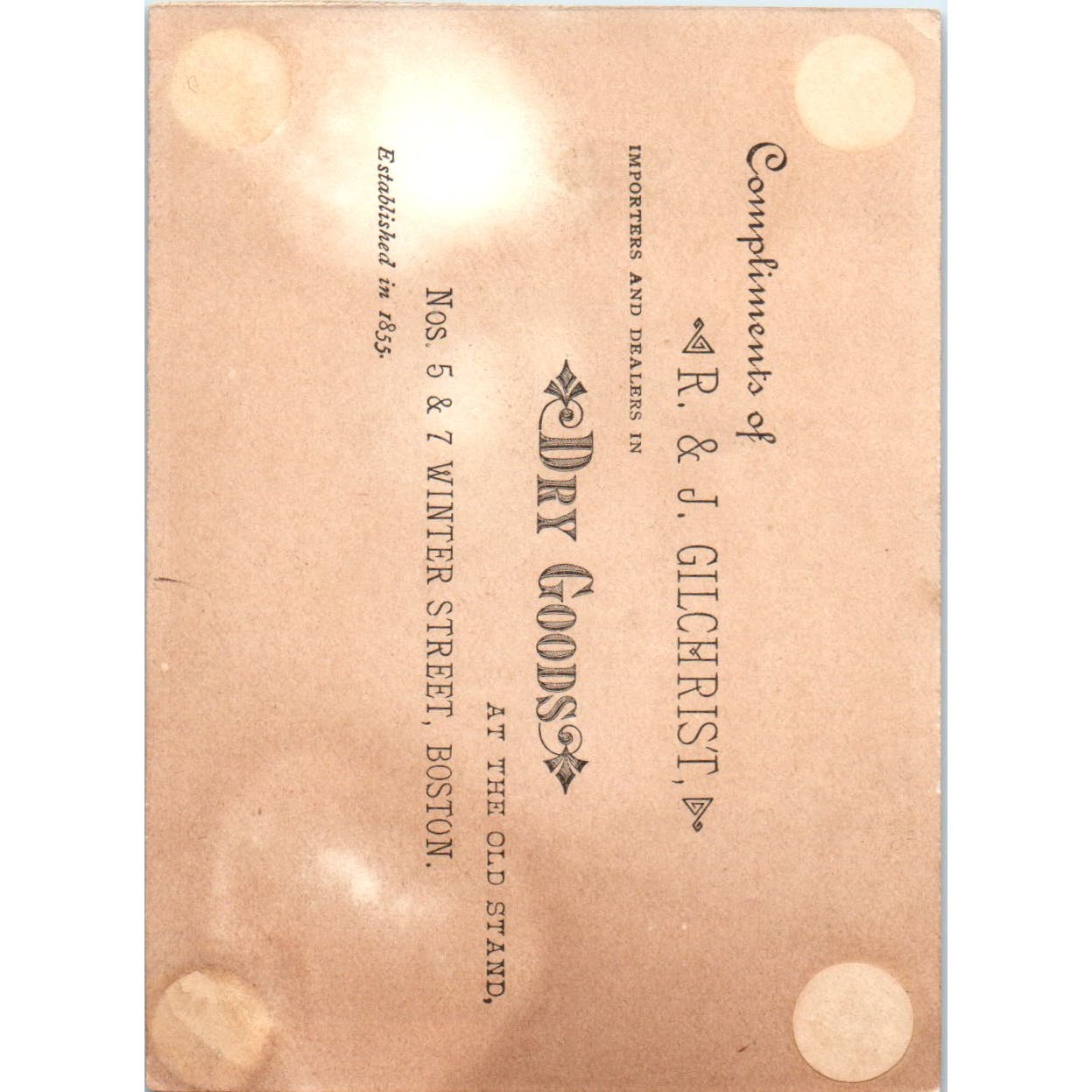 Oriental Boy R&J Gilchrist Dry Goods Boston MA c1880 Victorian Trade Card AE5