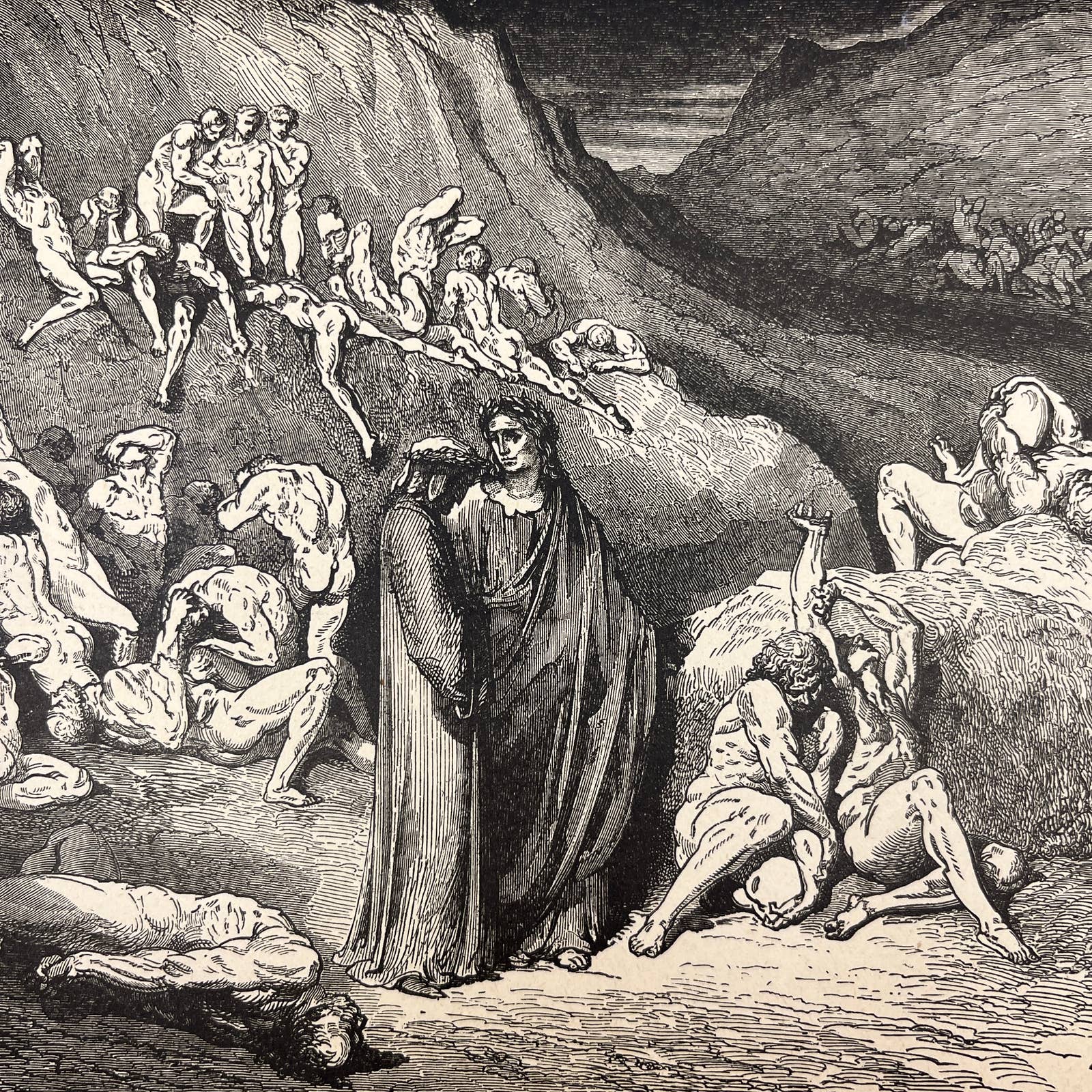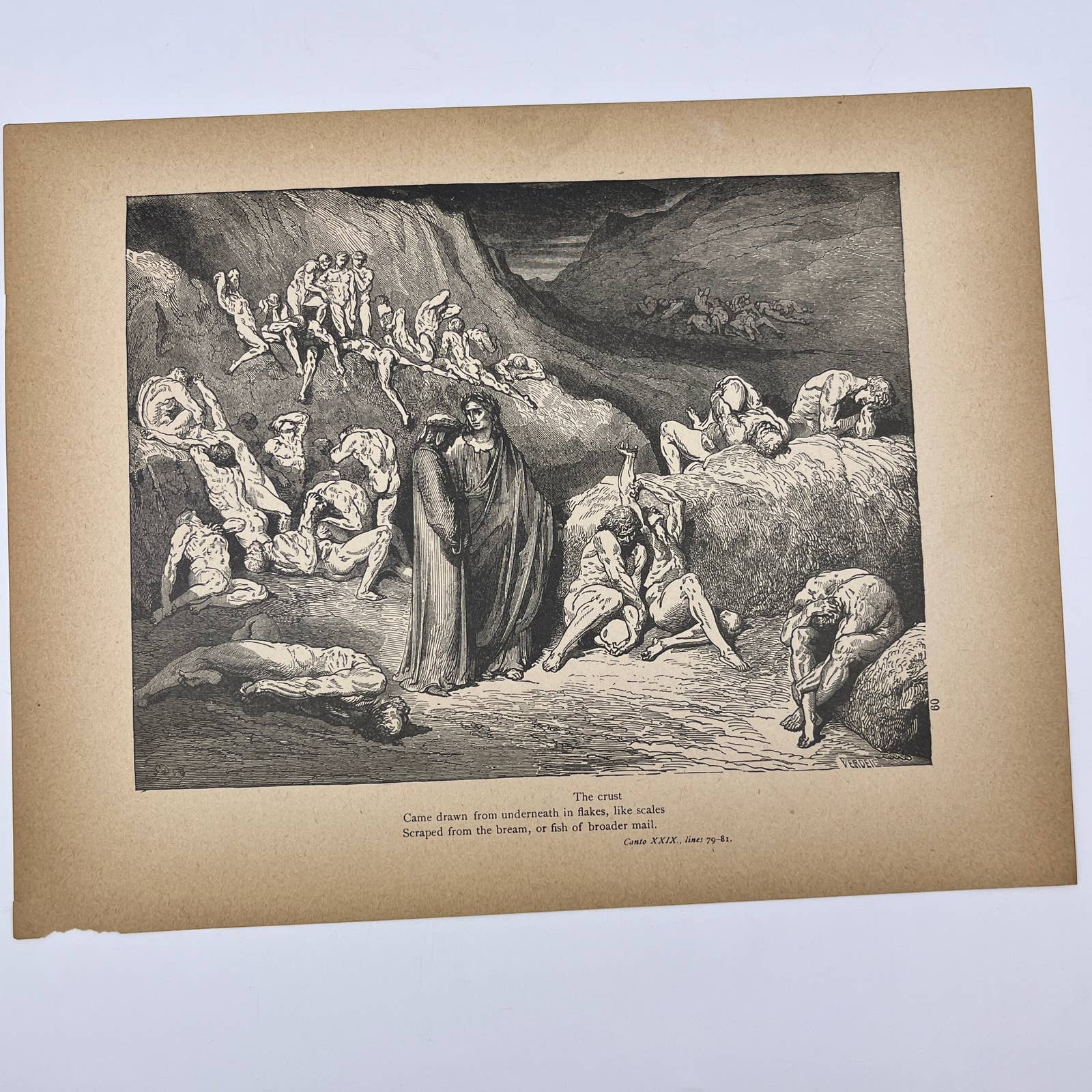 Taken from an original 1880s Divine Comedy Book of Engravings by Gustav Dore. Paper is getting brittle around the edges and may have small tearing and some spots and other signs of age, as it is near 150 years old.