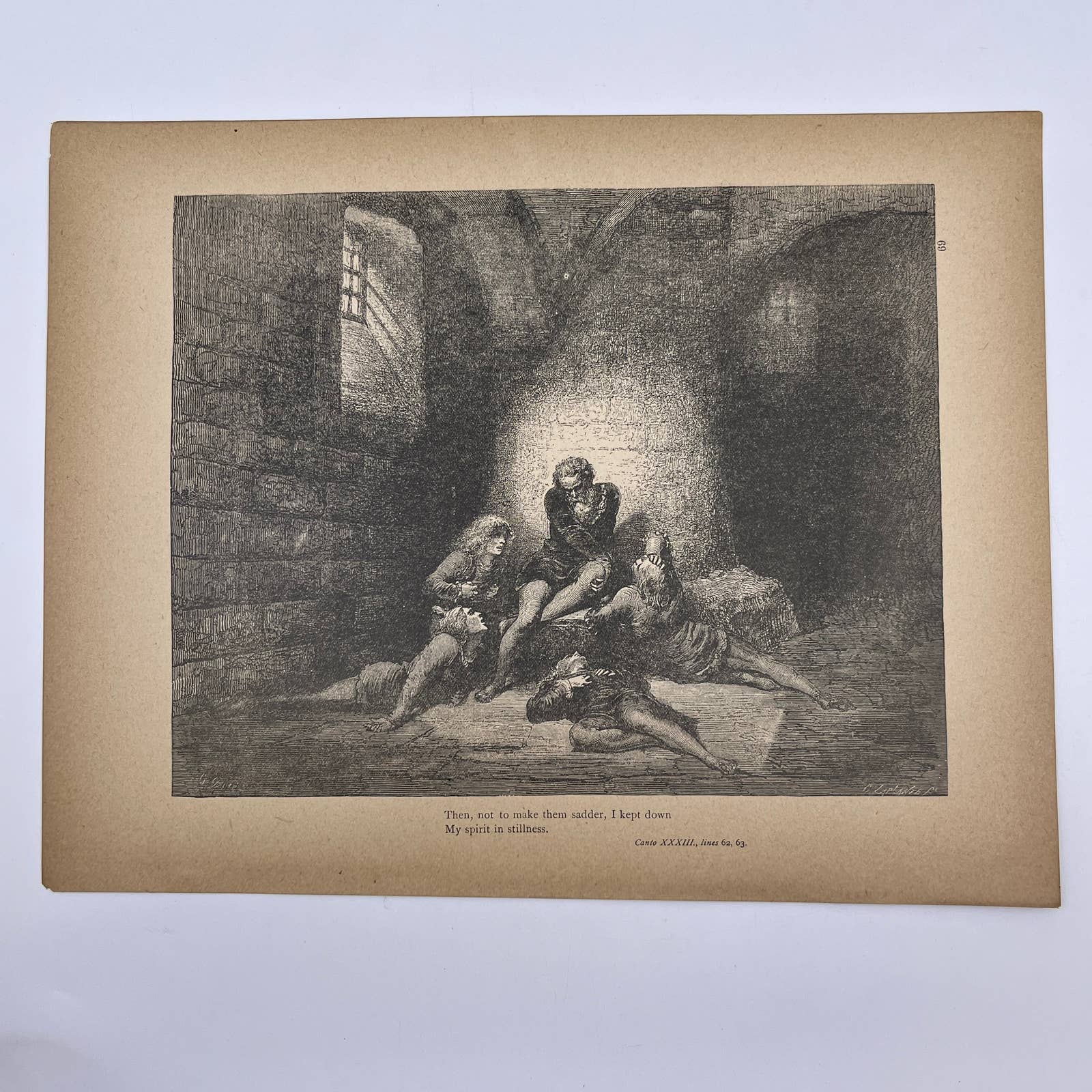 Original 1880s Gustave Dore Engraving Dante kept down My spirit in stillness FL4