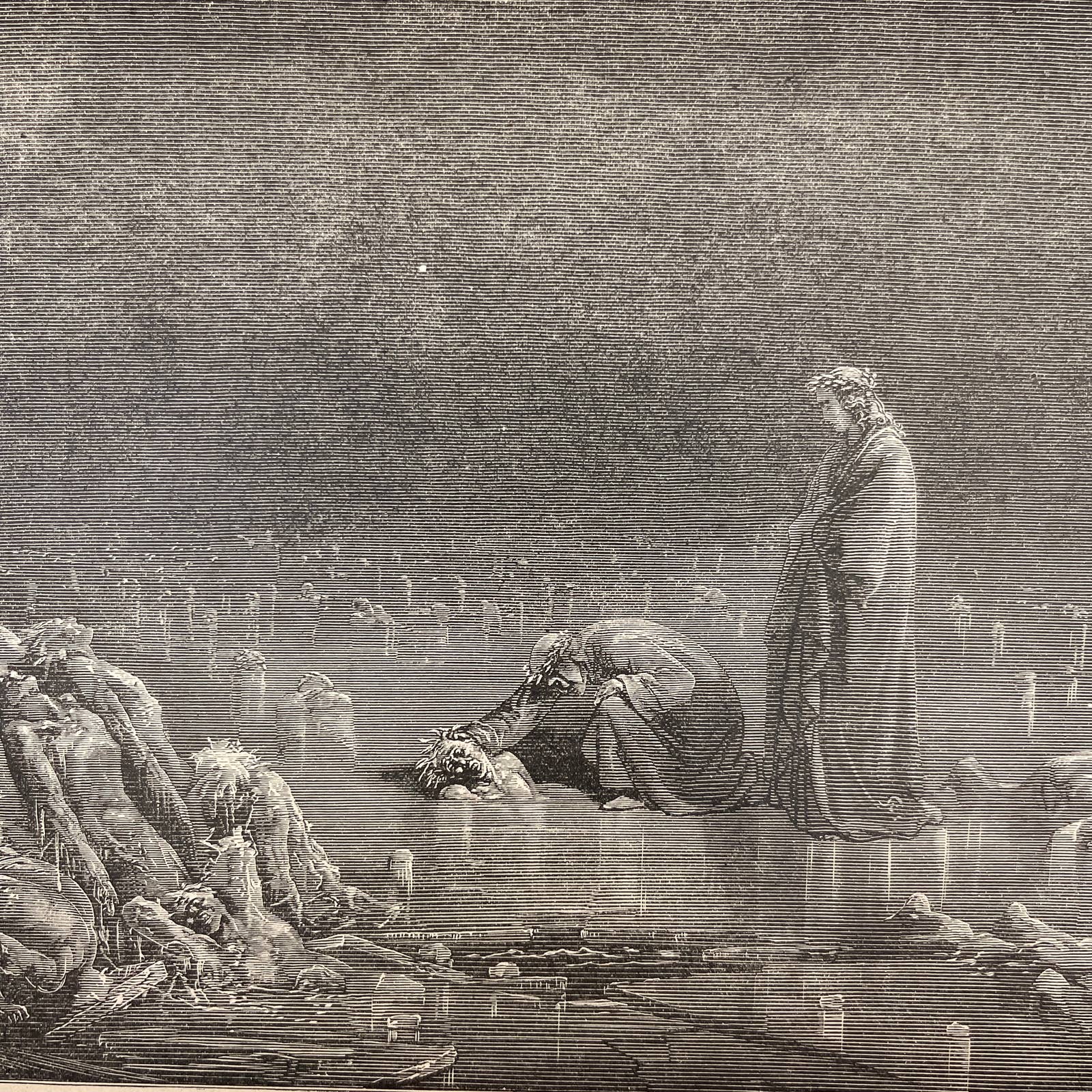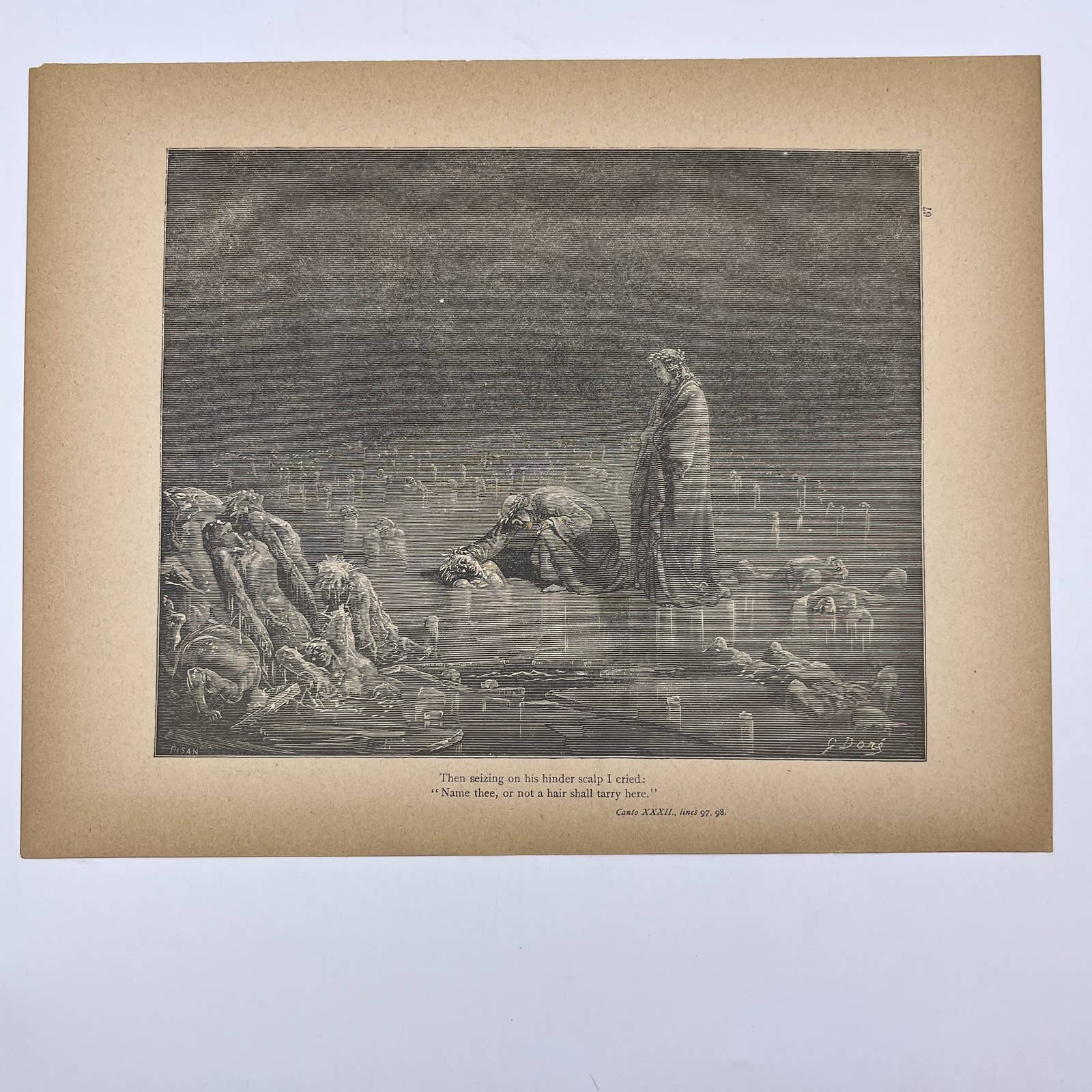 Taken from an original 1880s Divine Comedy Book of Engravings by Gustav Dore. Paper is getting brittle around the edges and may have small tearing and some spots and other signs of age, as it is near 150 years old.