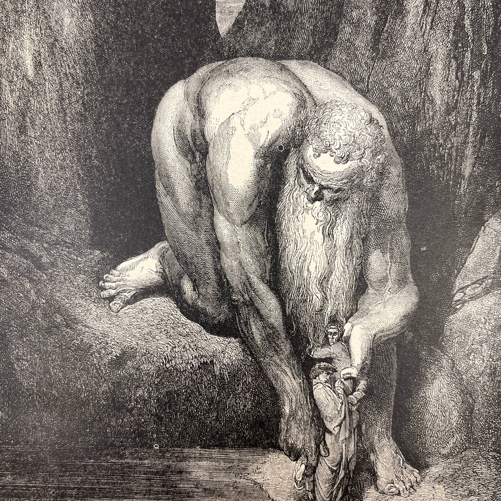 Original 1880s Gustave Dore Engraving Dante The Giant Anateus FL4