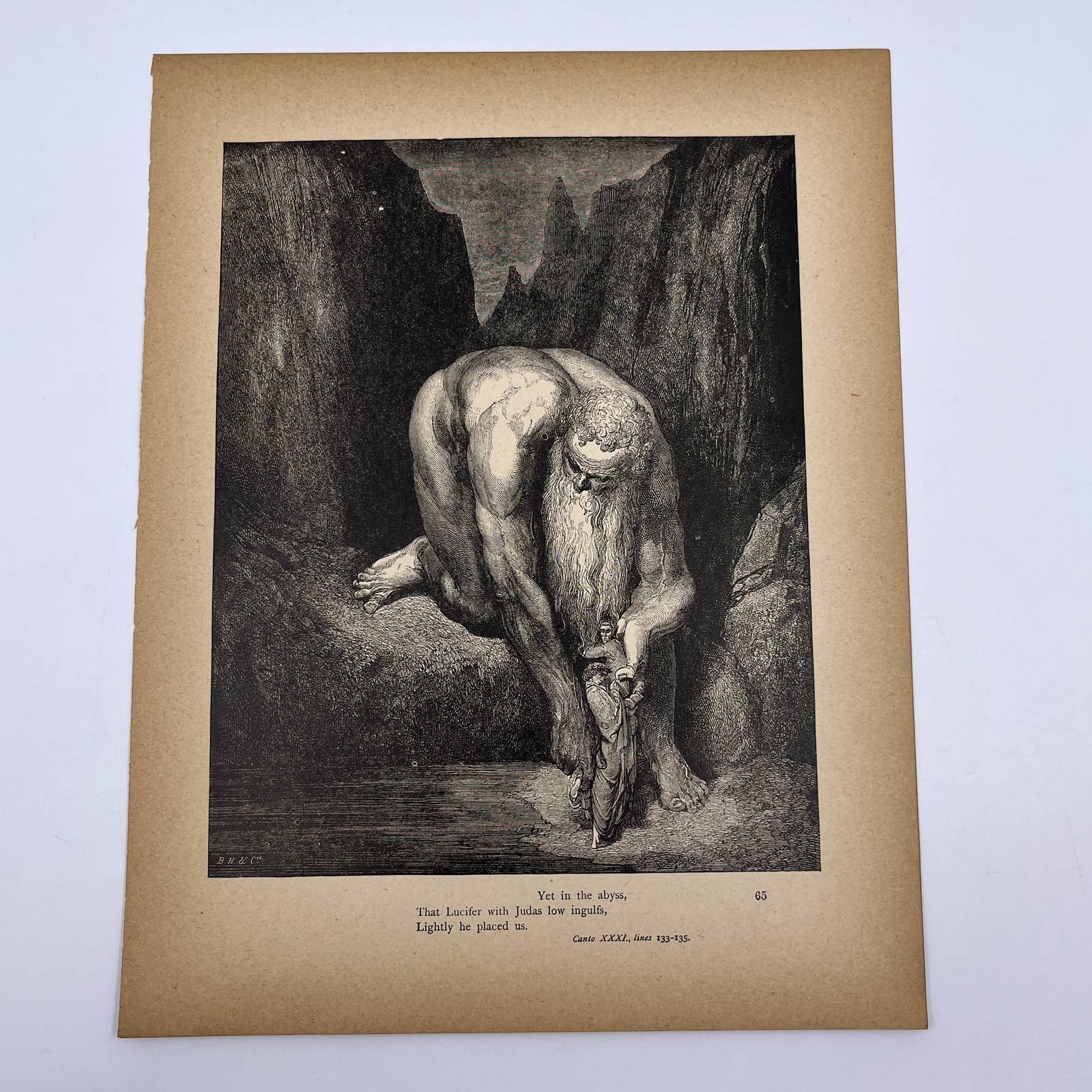 Taken from an original 1880s Divine Comedy Book of Engravings by Gustav Dore. Paper is getting brittle around the edges and may have small tearing and some spots and other signs of age, as it is near 150 years old.