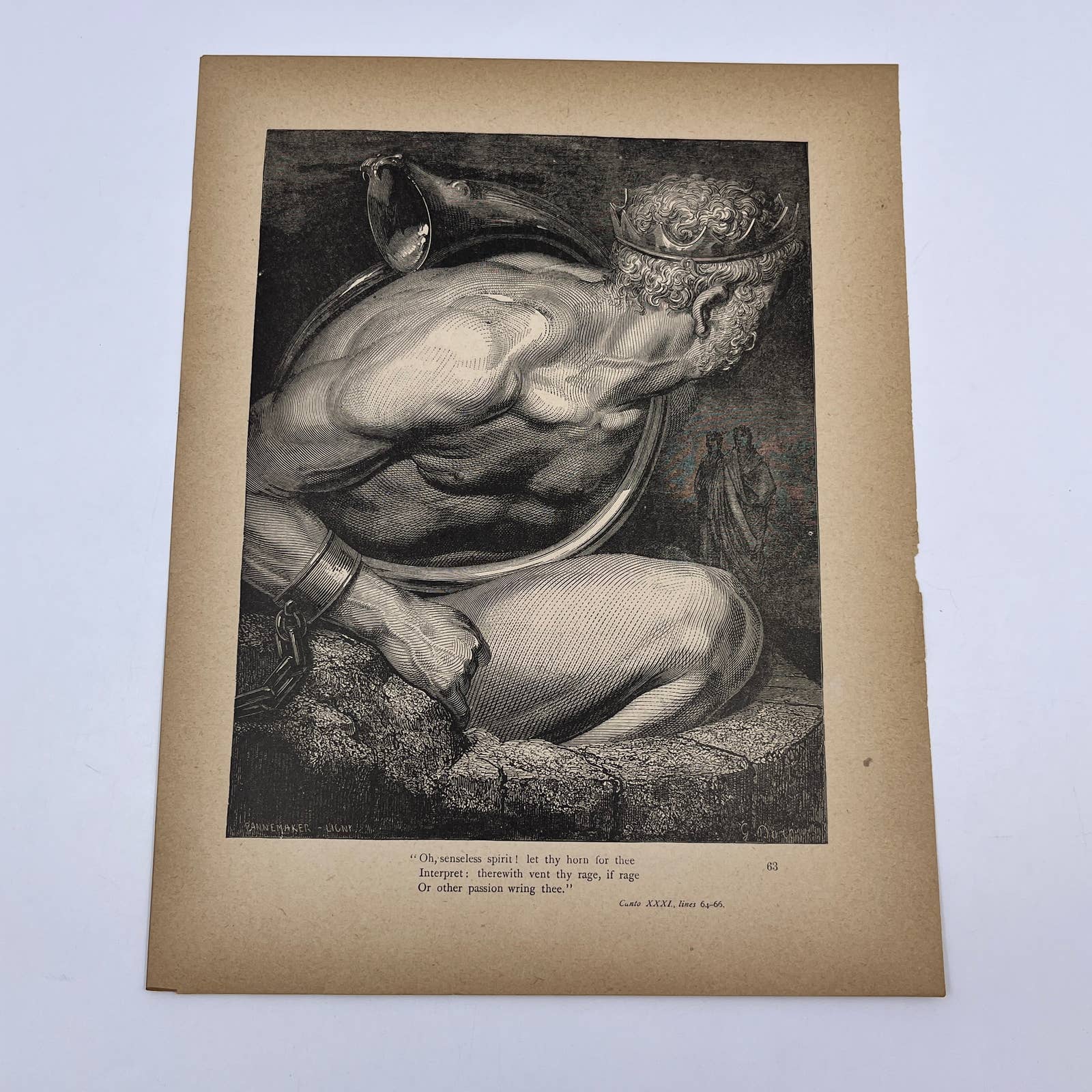 Original 1880s Gustave Dore Engraving Dante The Giant - Nimrod FL4