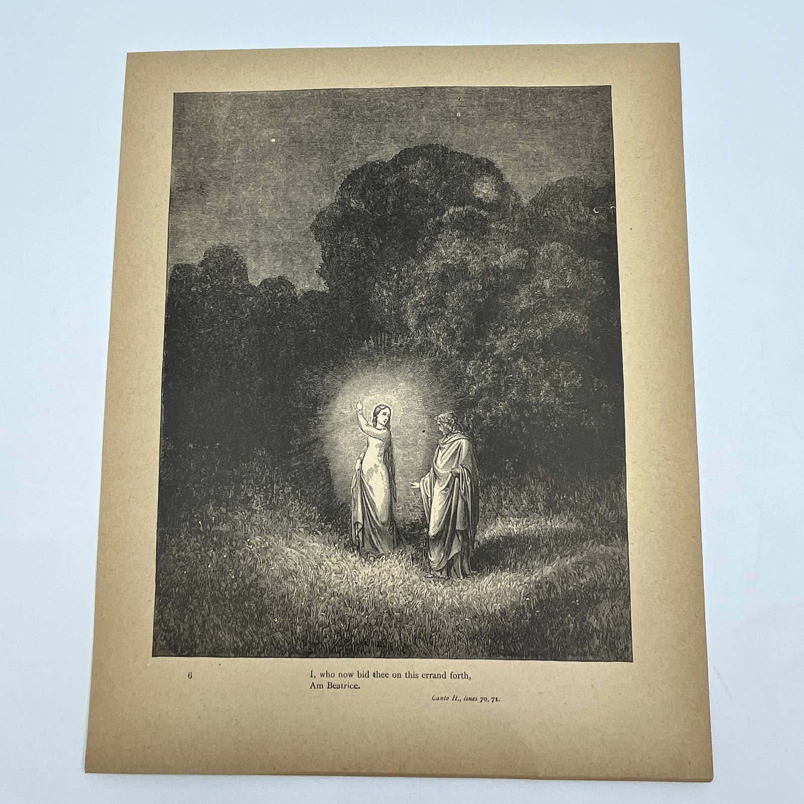 Original 1880s Gustave Dore Engraving Divine Comedy - Beatrice & Virgil FL4