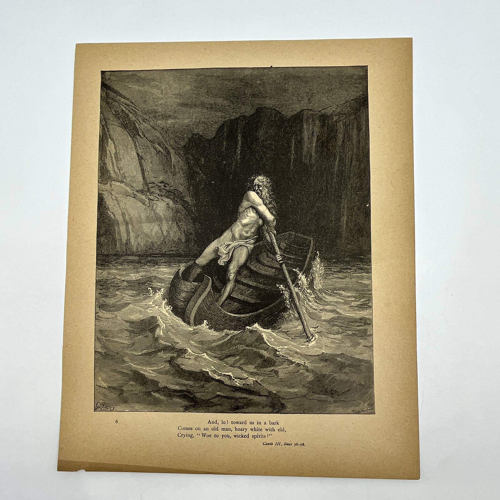Original 1880s Gustave Dore Engraving Divine Comedy - Charon on the Styx FL4