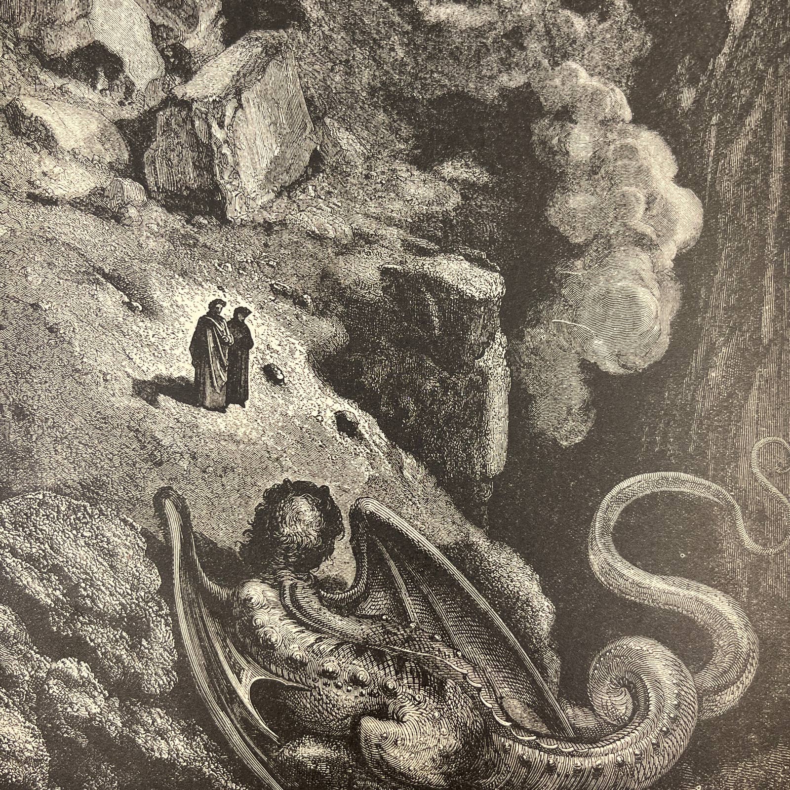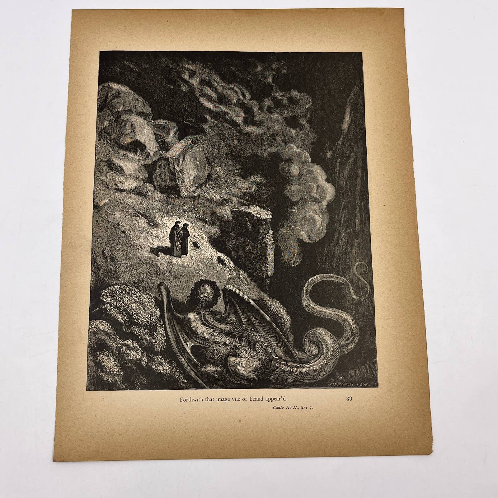 Original 1880s Gustave Dore Engraving Divine Comedy Geryon Symbol of Deceit FL4