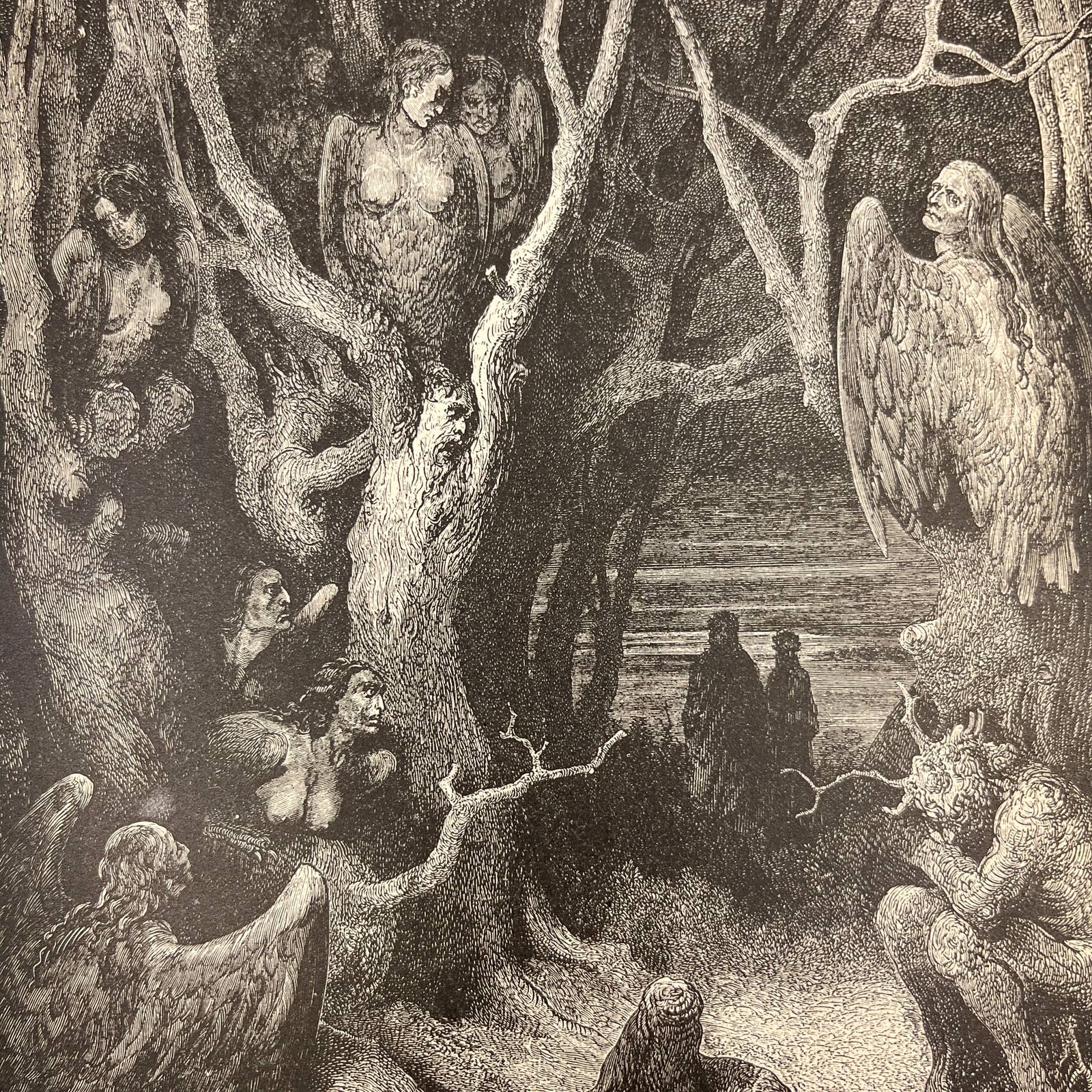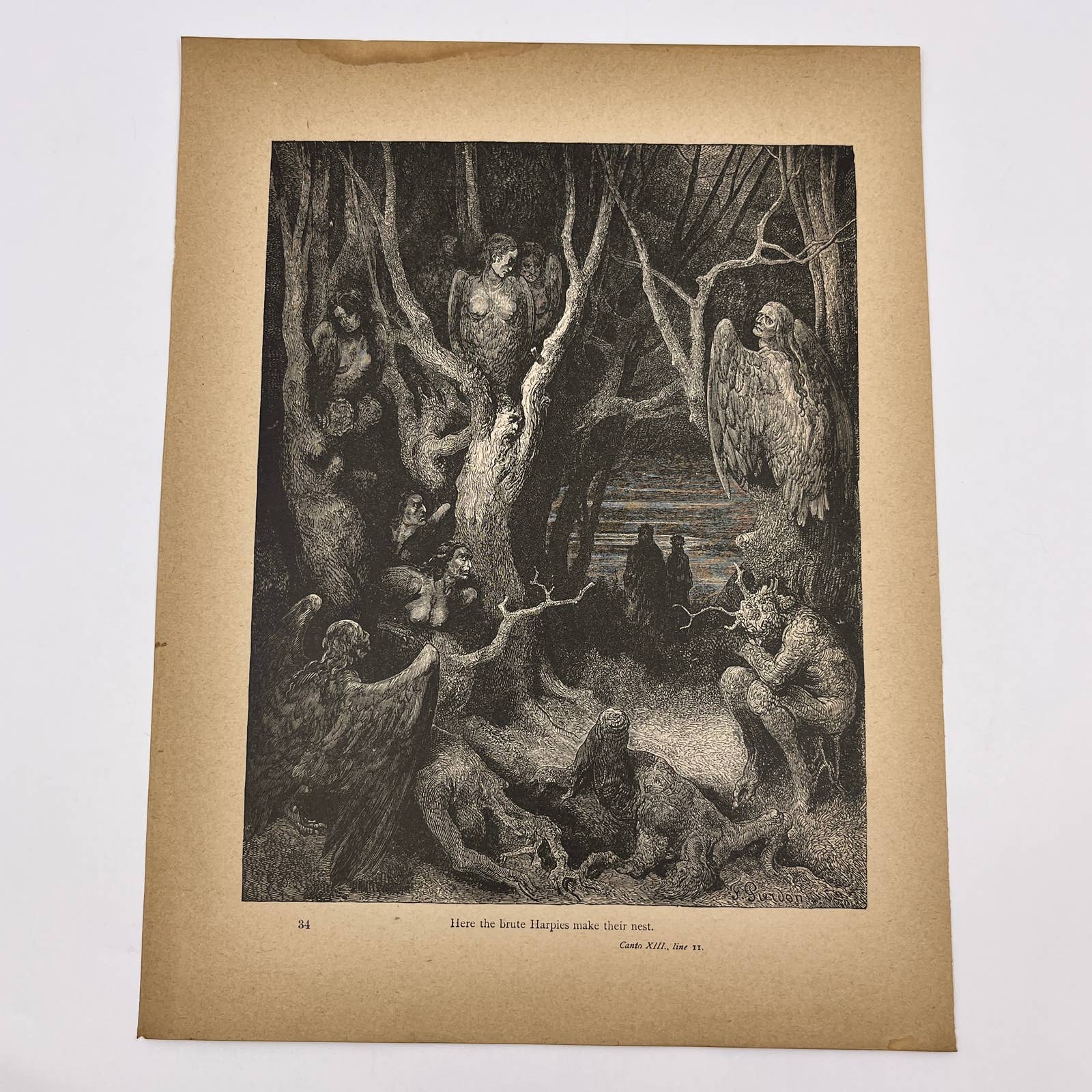 Original 1880s Gustave Dore Engraving Divine Comedy the brute Harpies make their nest FL4