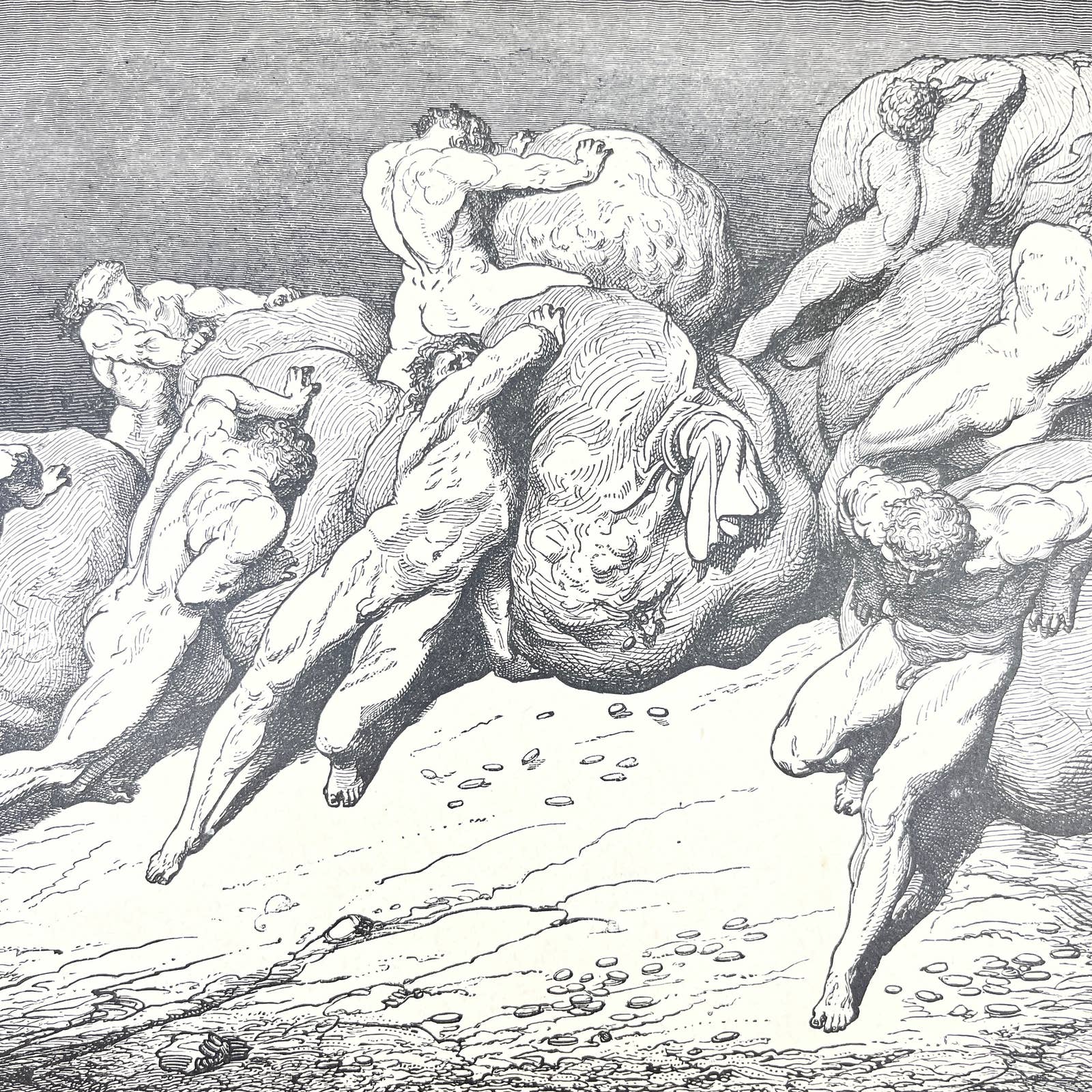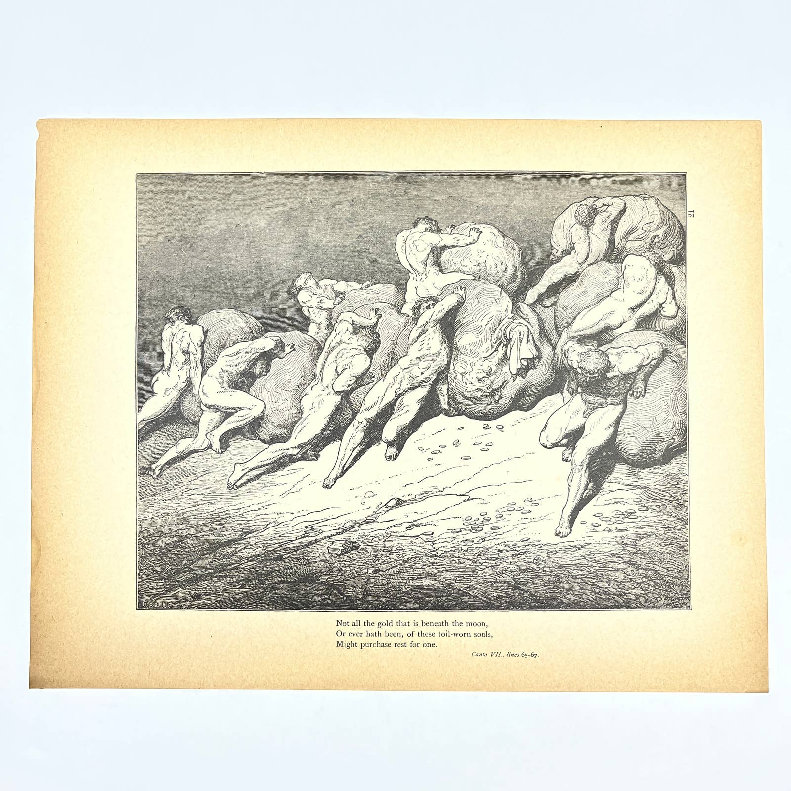 Original 1880s Gustave Dore Engraving Divine Comedy Hoarders and Wasters FL4