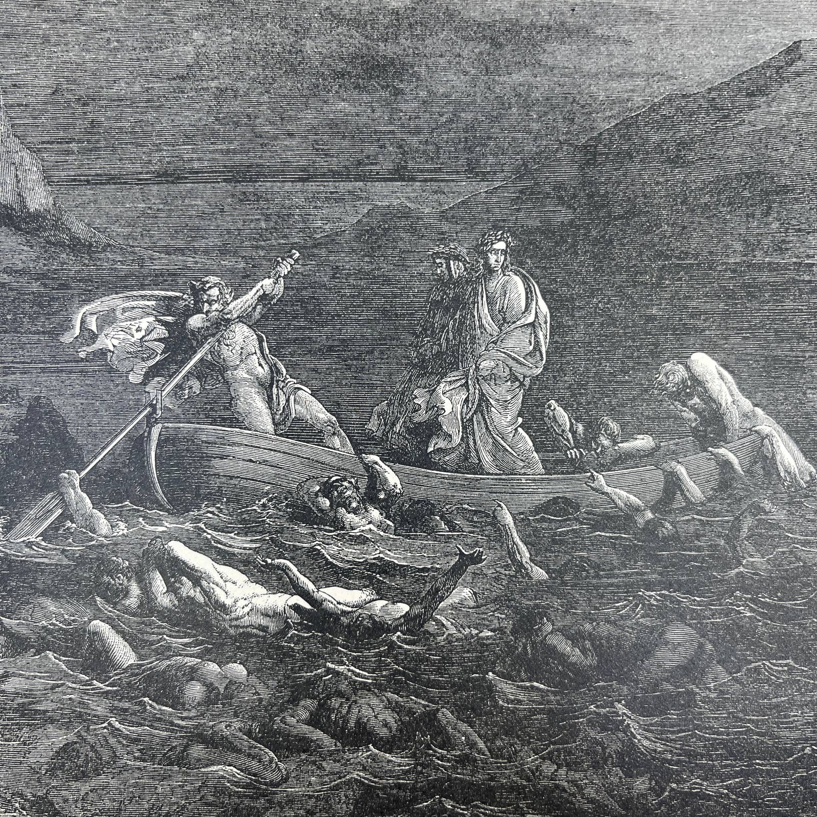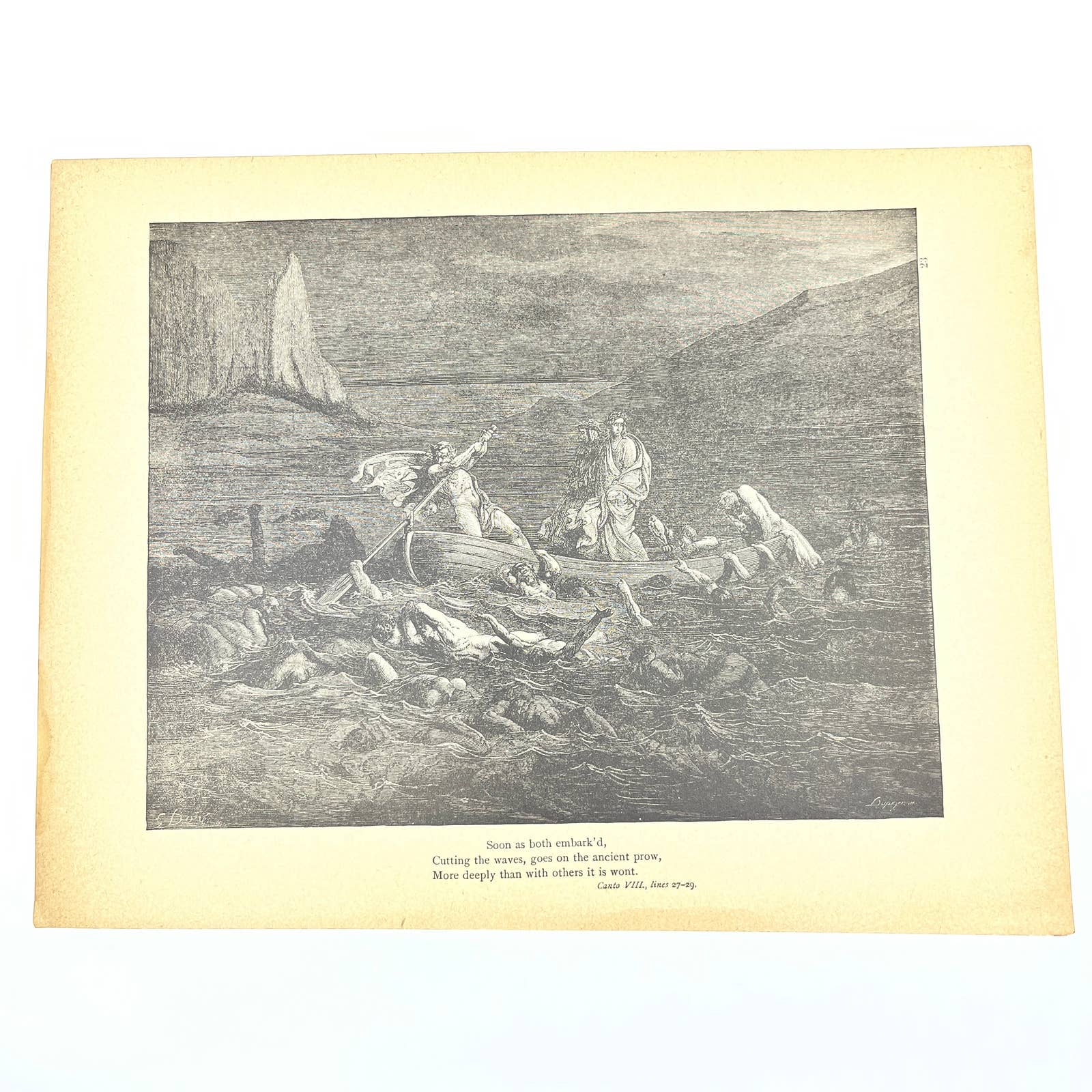 Original 1880s Gustave Dore Engraving Divine Comedy Phylegyas Ferryman Styx FL4