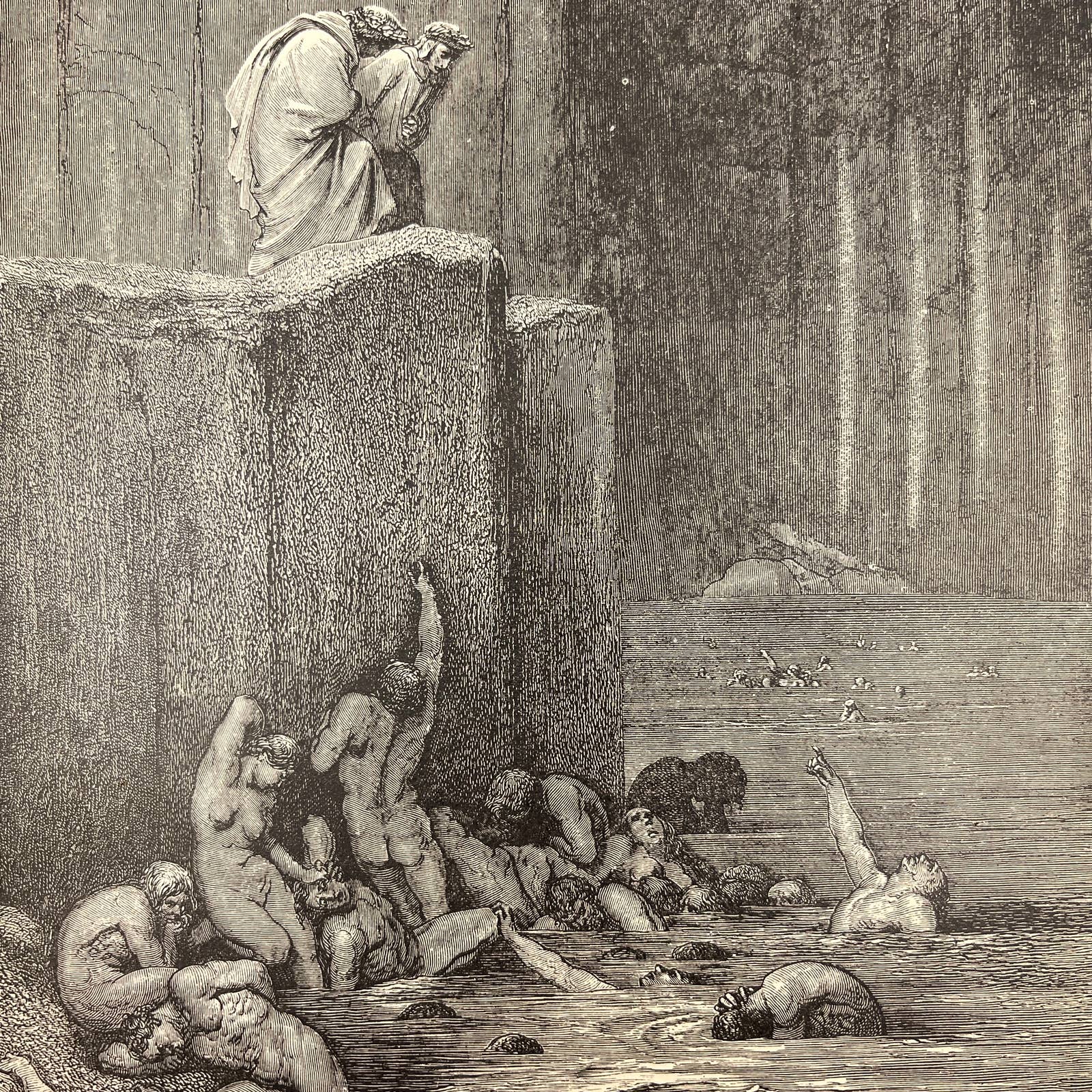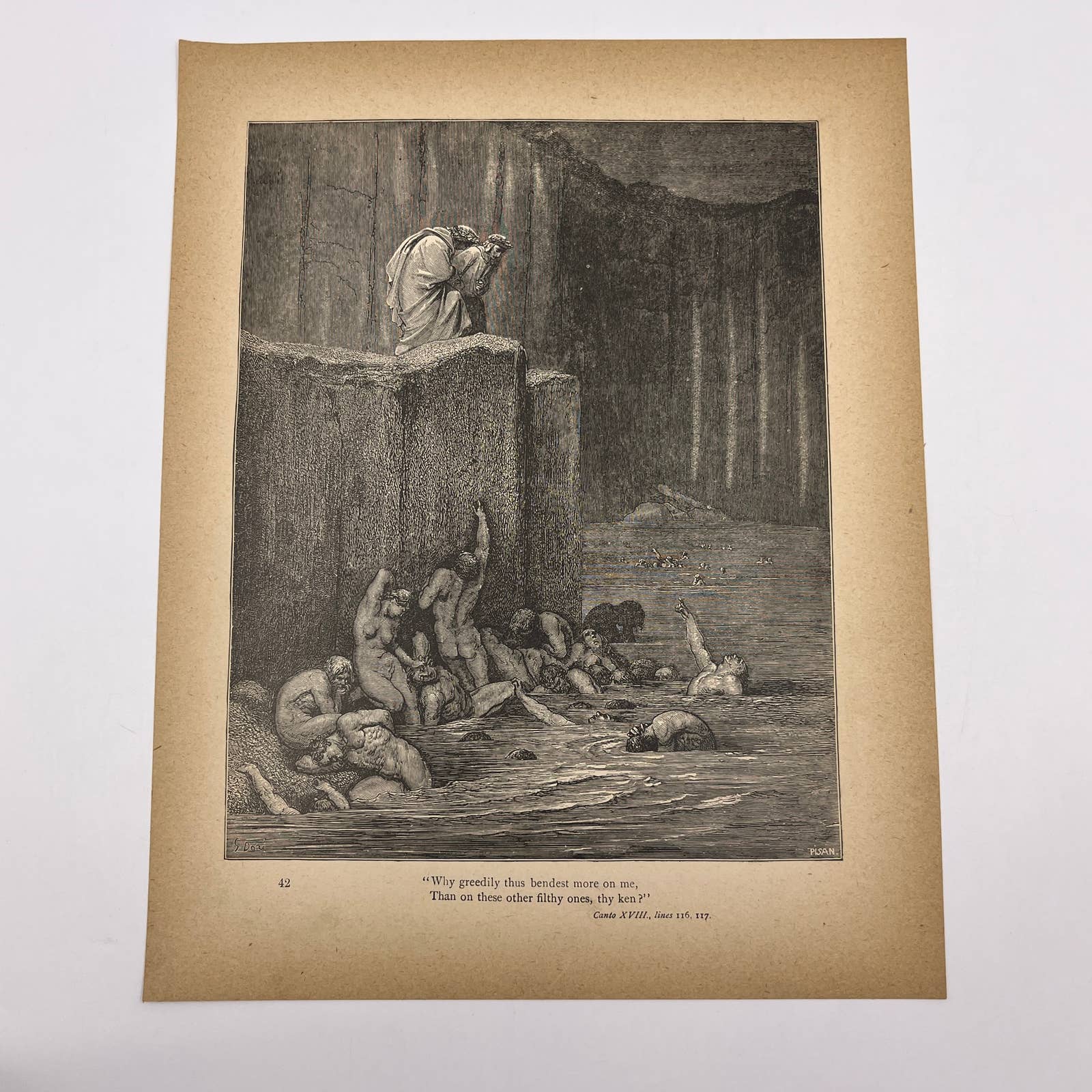 Original 1880s Gustave Dore Engraving Divine Comedy Punishment of Flatterers FL4