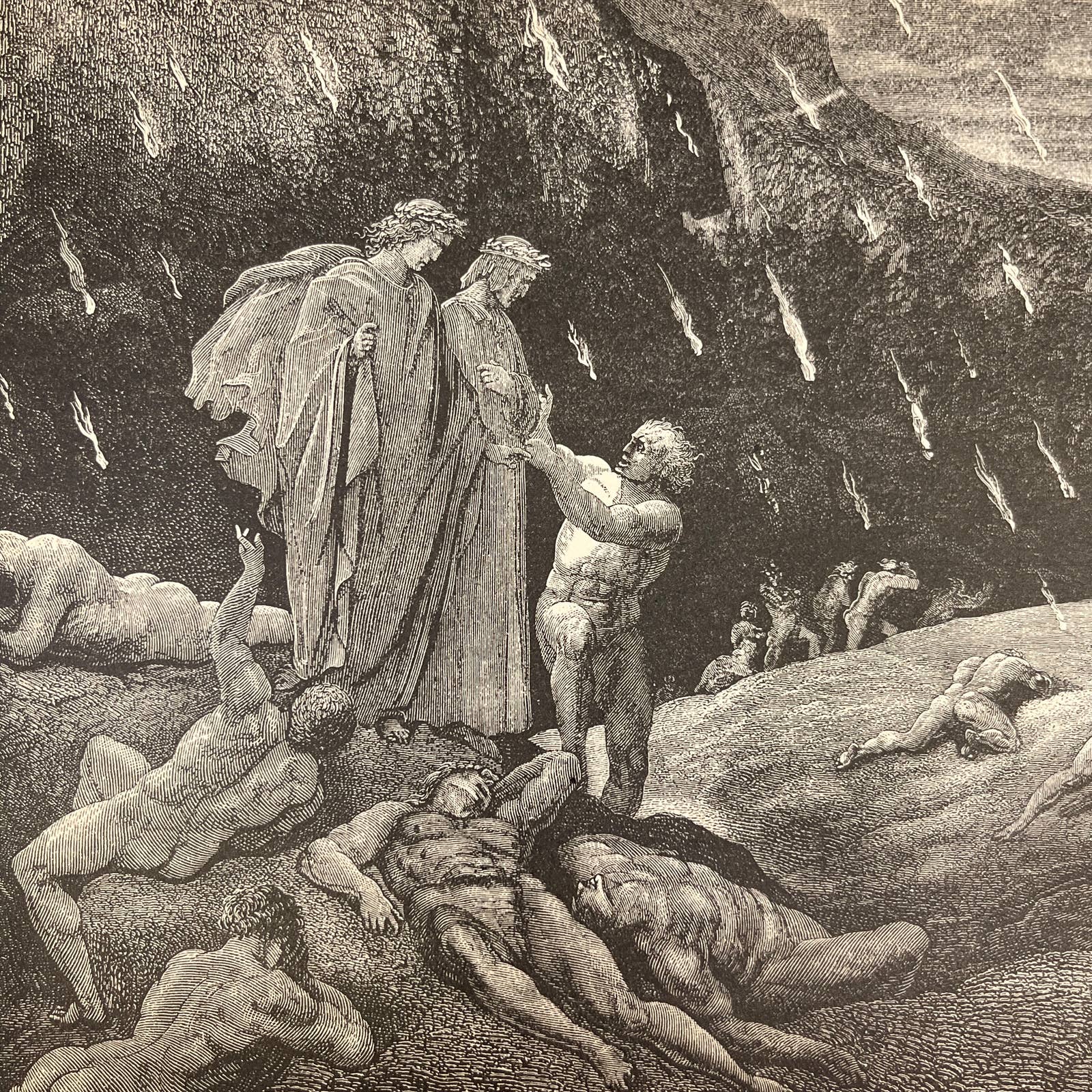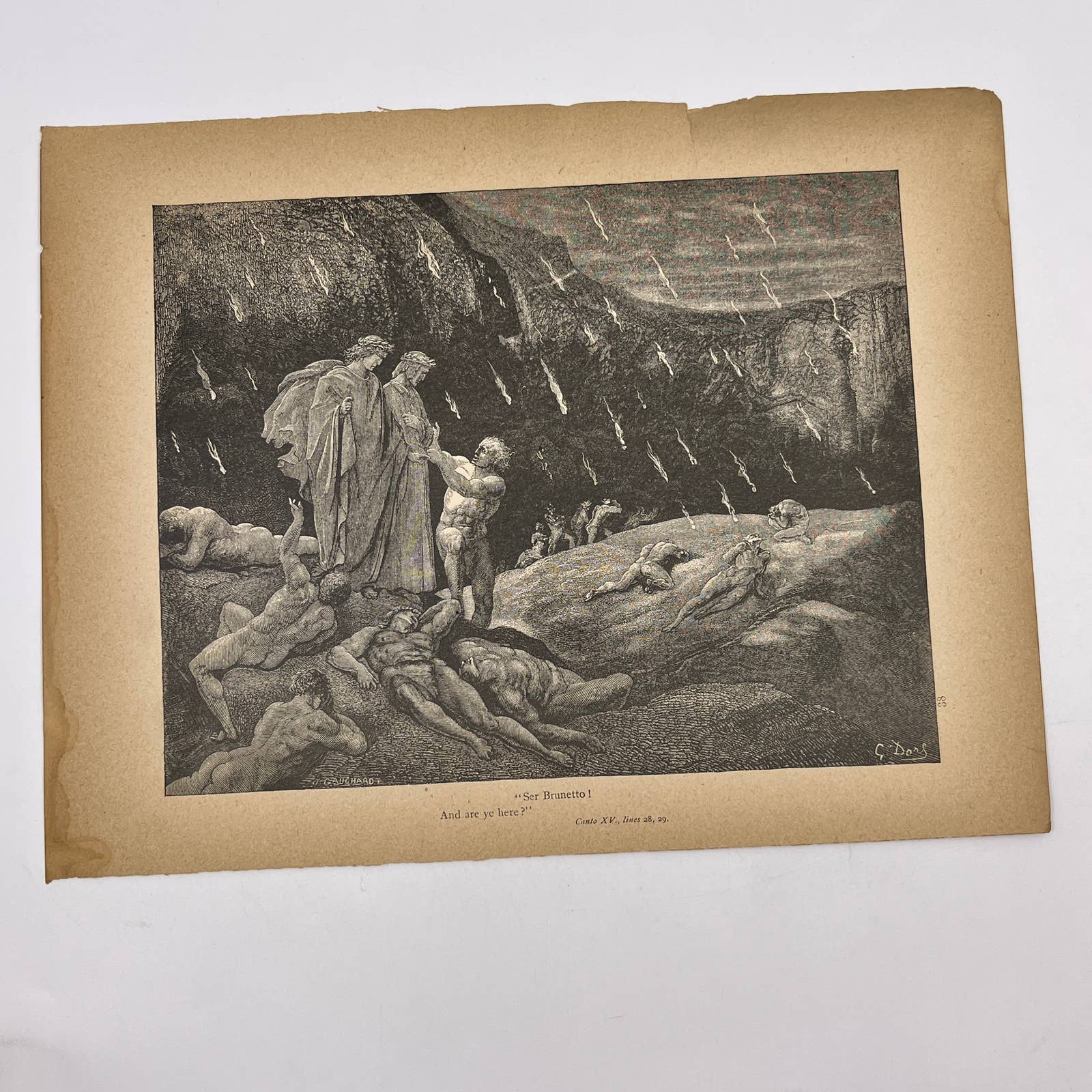 Taken from an original 1880s Divine Comedy Book of Engravings by Gustav Dore. Paper is getting brittle around the edges and may have small tearing and some spots and other signs of age, as it is near 150 years old.