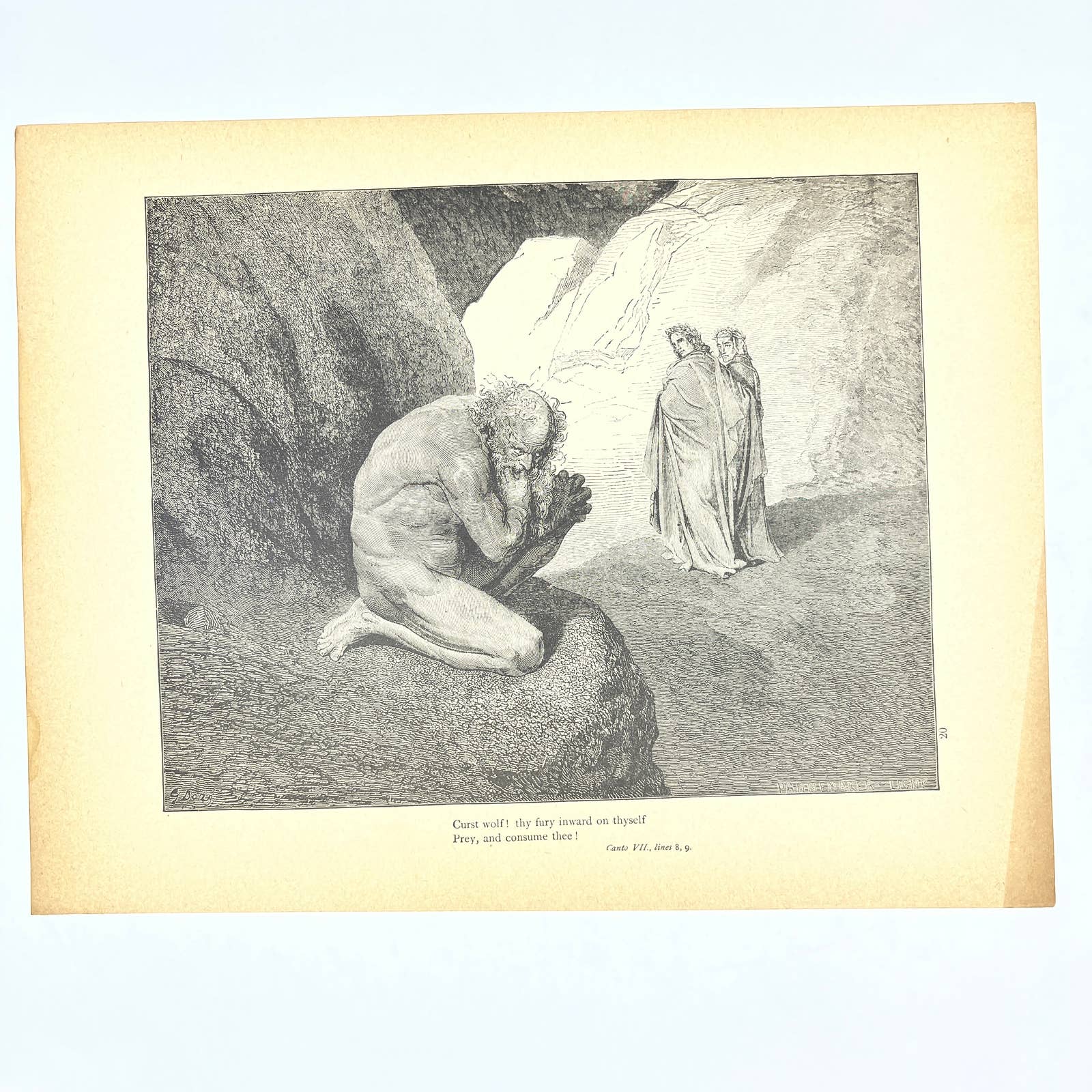Original 1880s Gustave Dore Engraving Divine Comedy Virgil Rebukes Plutus FL4