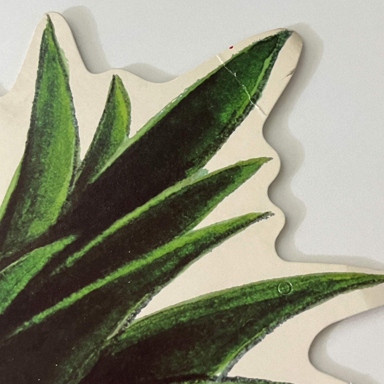 Has a small bend at the very tip top of the pineapple stem. Measurement is approximate. Original store display sign on a tagboard material. Has some minor blemishes but overall looks great for the age. See pics for condition.
