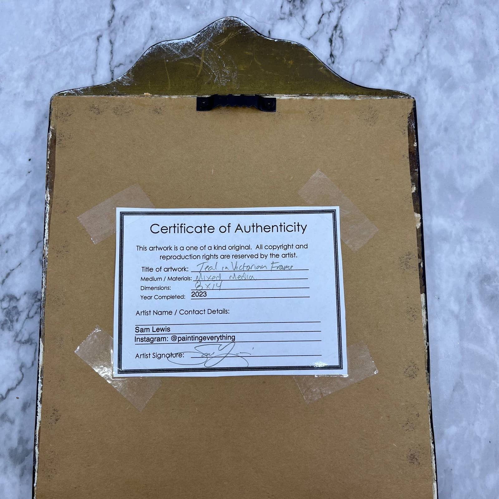 Original Framed Abstract Art Painting 14x8 “Teal in Victorian Frame” w/ COA